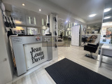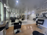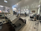 Il est composé d'une réception ouverte sur une grande piéce avec 7 postes de travail, 3 bacs à shampoing et d'un bureau dans une pièce dédiée.