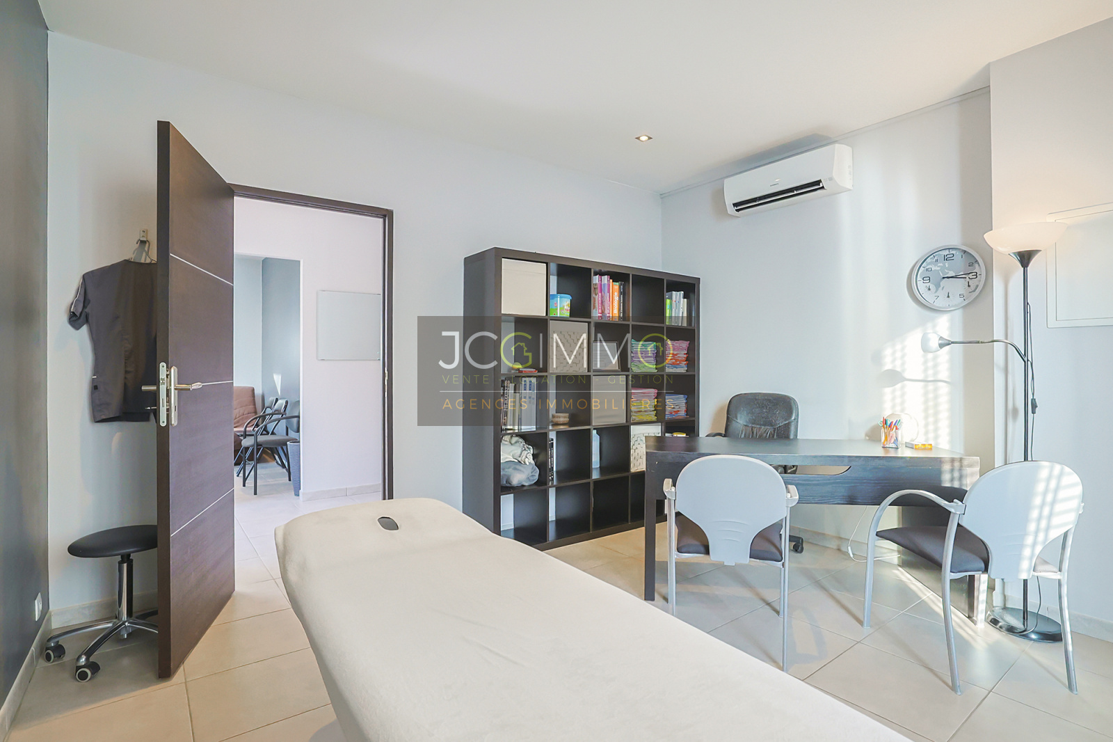 Accessible de plain-pied pour une surface de 35,9m² au total : Accueil, Salle d’attente, Bureau, Dégagement, Placard, WC indépendant.