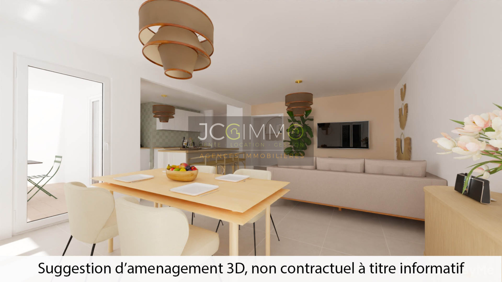 L'appartement est traversant, il se compose : Entrée, 3 chambres (dont 1 avec terrasse de 3,7 m²), Dressing (3,35m²), Salle de douches, WC séparé, Belle pièce de vie (27,85m²) et cuisine indépendante (12,55 m²) donnant toutes les 2 sur une terrasse couverte sud/est de 8,10m² SANS VIS A VIS.
