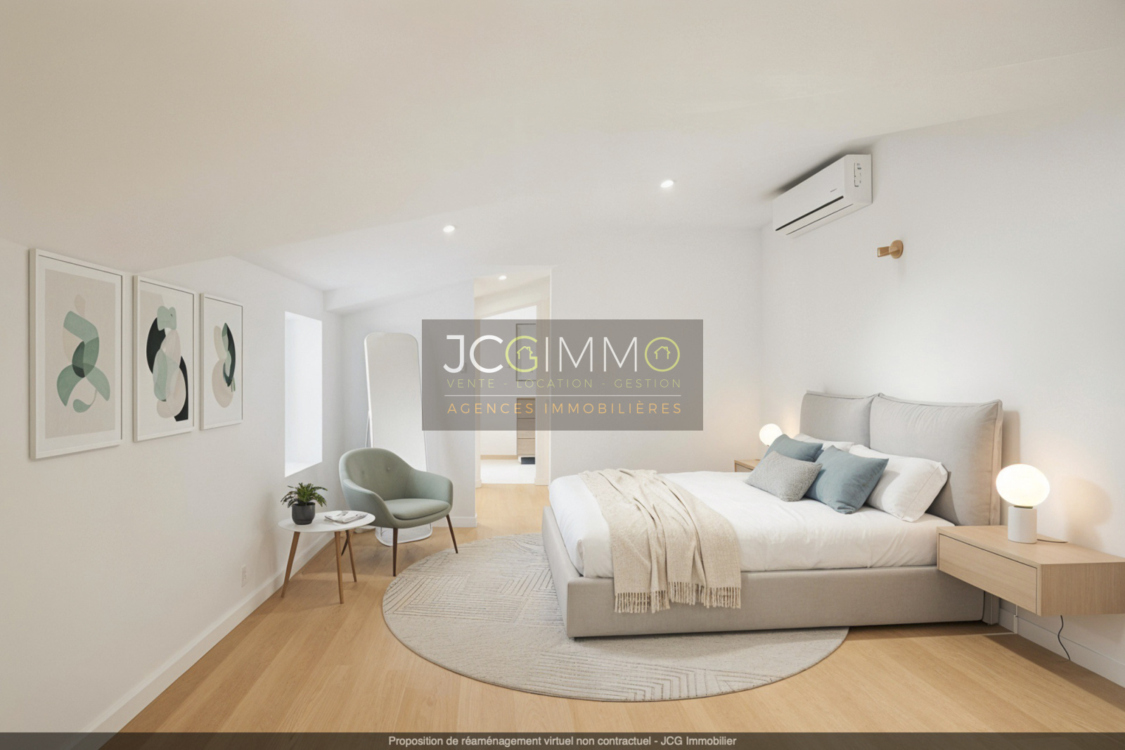 Des suggestions d’aménagement virtuel (non contractuel, à titre informatif) sont proposées en photos.