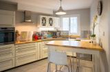 Au rez-de-chaussée, vous trouverez un hall d’entrée, un spacieux salon/séjour avec son poêle à bois, une cuisine séparée ( pouvant aisément s’ouvrir sur le salon ), des WC et un accès au garage par l’intérieur.