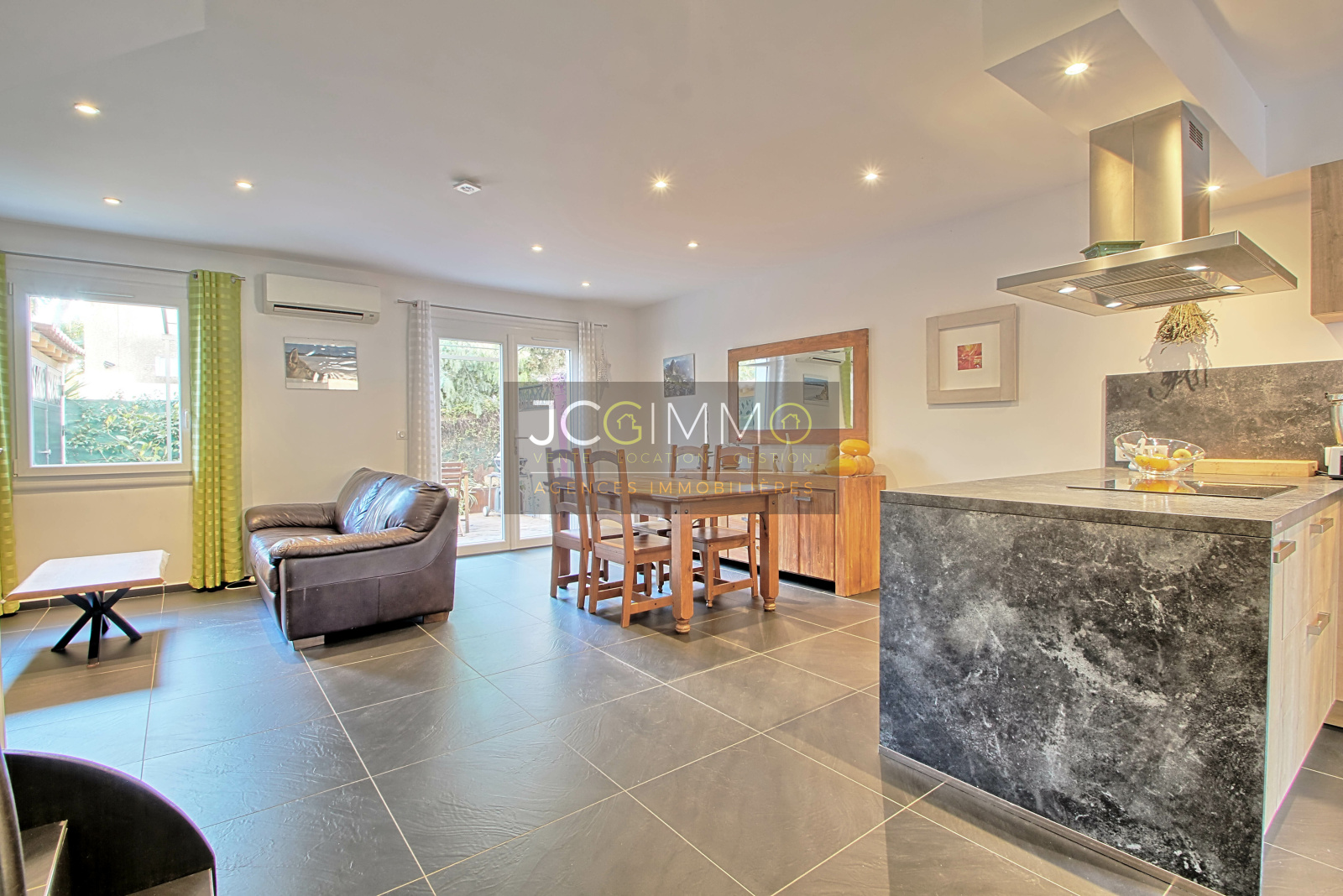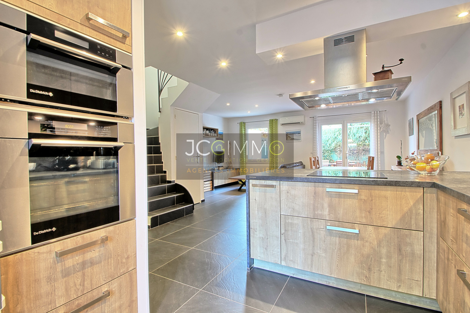 VENDUE SOLLIES PONT (secteur Sainte Christine). EN EXCLUSIVITE CHEZ JCG IMMO ET NULLE PART AILLEURS, nous vous proposons cette villa de 85m² env mitoyenne construite en 1985 INTEGRALEMENT RESTAUREE A NEUF en 2017 avec des matériaux de qualité sur un terrain de 107m² env très bien aménagé exposé NORD-EST / SUD-OUEST en impasse et AU CALME.