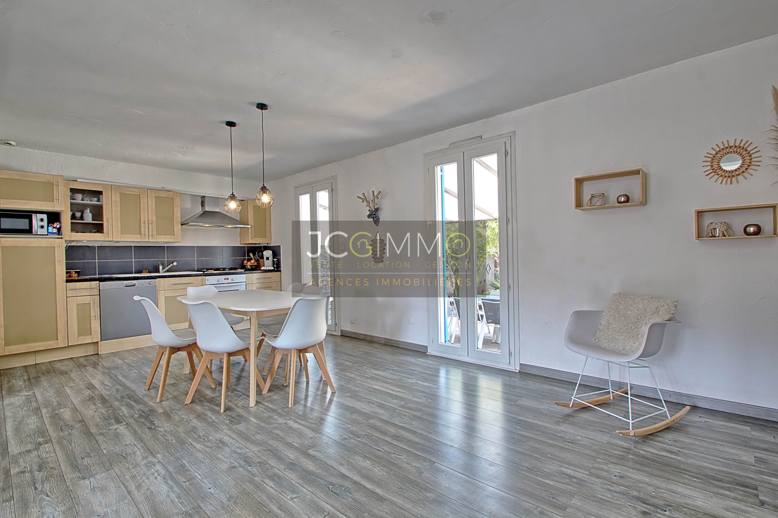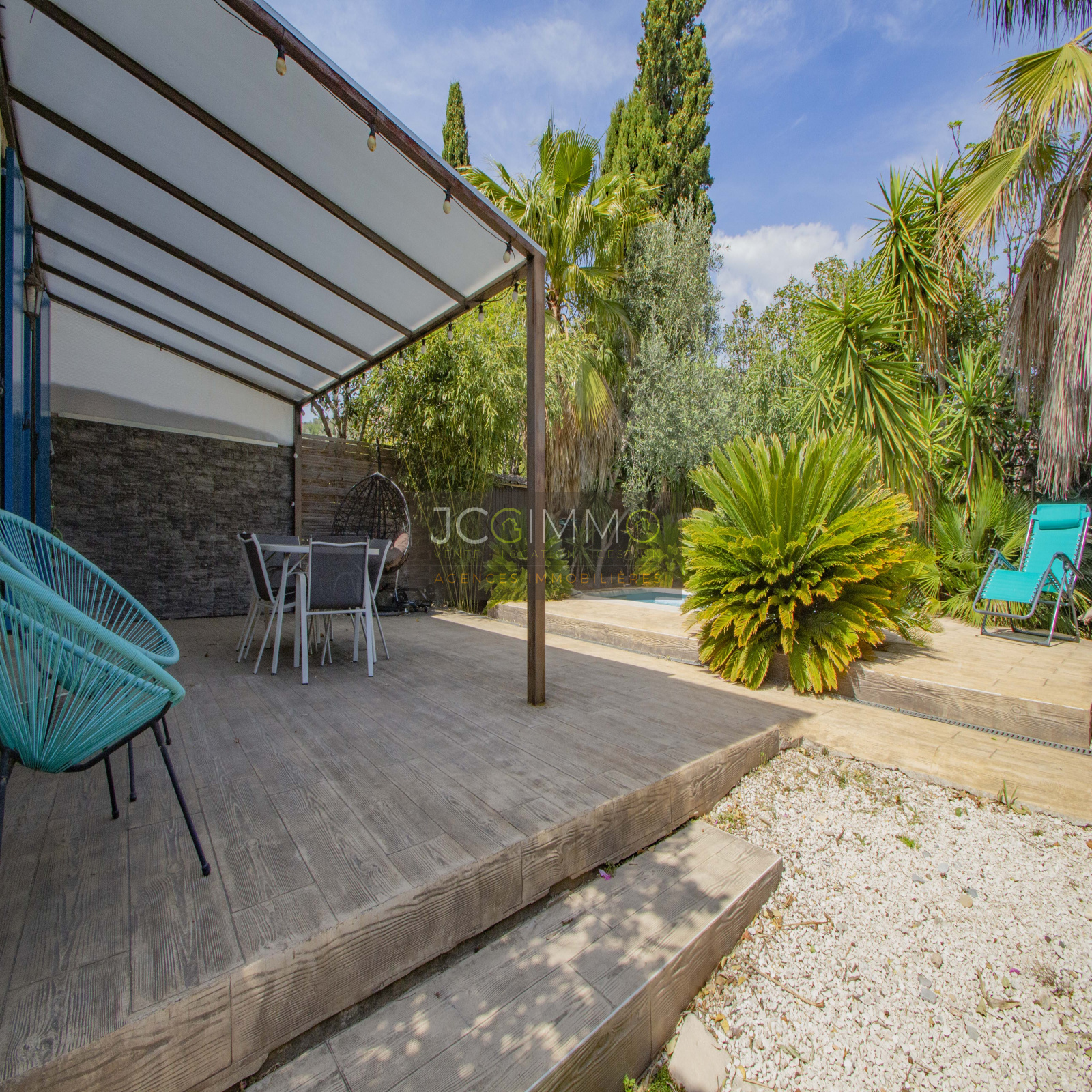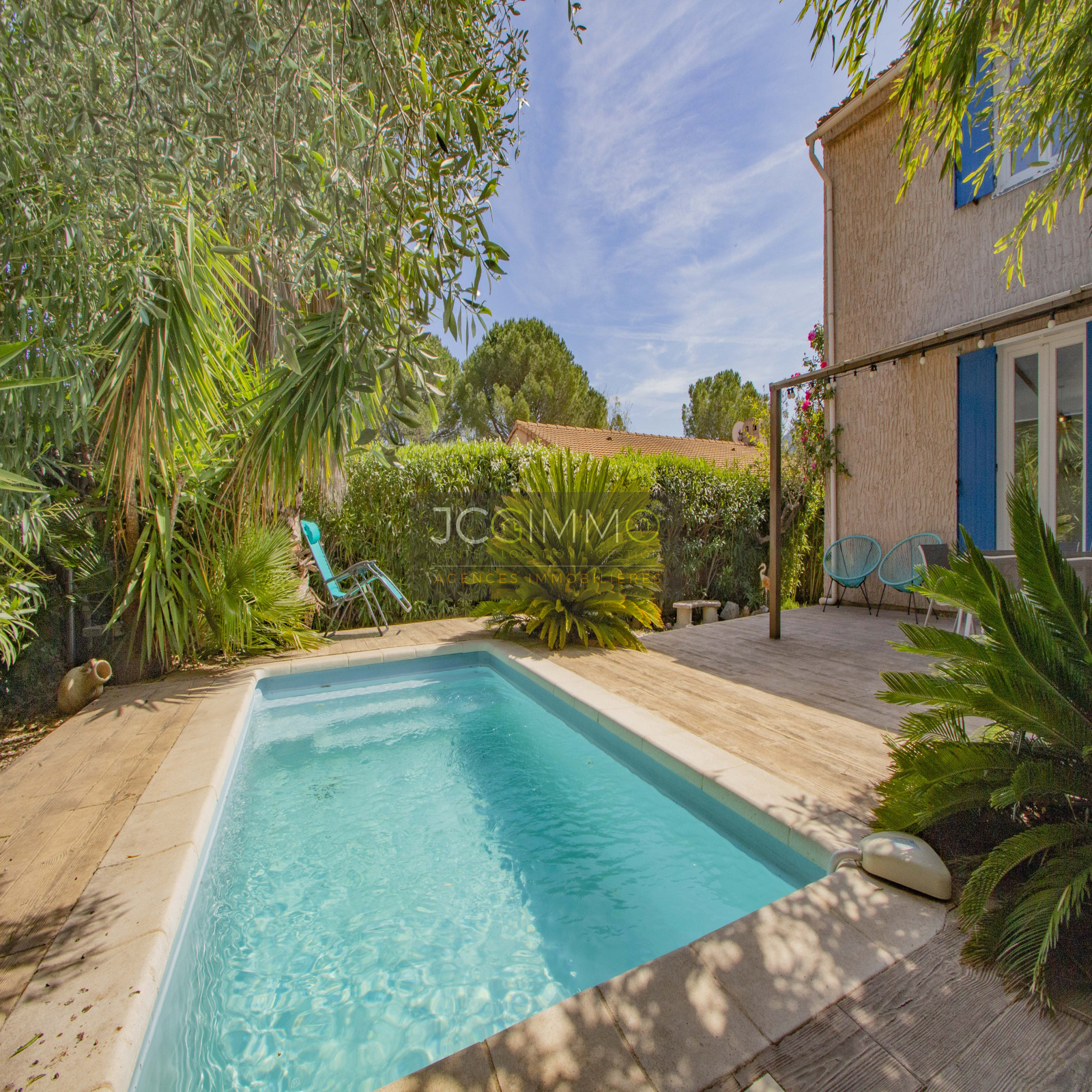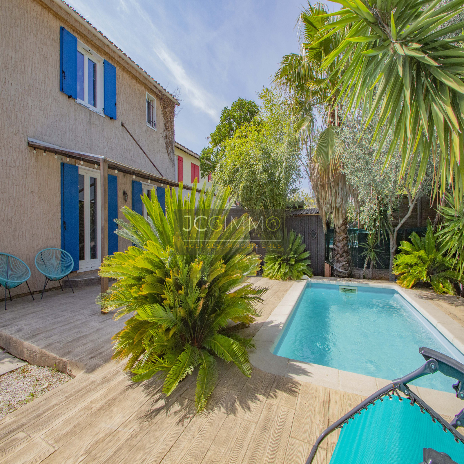 VENDUE Vous serez séduit par le Charme de cette Maison T4 de 94 M2 Habitable, édifiée sur un terrain de 296 m2 clos agrémenté d'une piscine bordée de palmiers vous offrant un véritable petit coin de Paradis et d'un petit garage/ atelier de 12 m2, idéalement implantée dans un lotissement situé à proximité de tous les commerces, écoles et stationnements. La maison se compose au rez-de-chaussée d'une belle et grande pièce de vie de 42 m2 comprenant un salon, une salle à manger ainsi qu'une cuisine aménagée et équipée, un cellier, un wc, au 1er étage de trois grandes chambres, d'une salle de bains, d'un wc. A VISITER AU PLUS VITE ! COUP DE COEUR GARANTI !! Sébastien Bigot carte de collaborateur n° ADC 8306 2020 000 227 757 immatriculée au RCS sous le numéro 438 358 566 RSAC TOULON N° de police d'assurance Crédit Mutuel N° B16019064