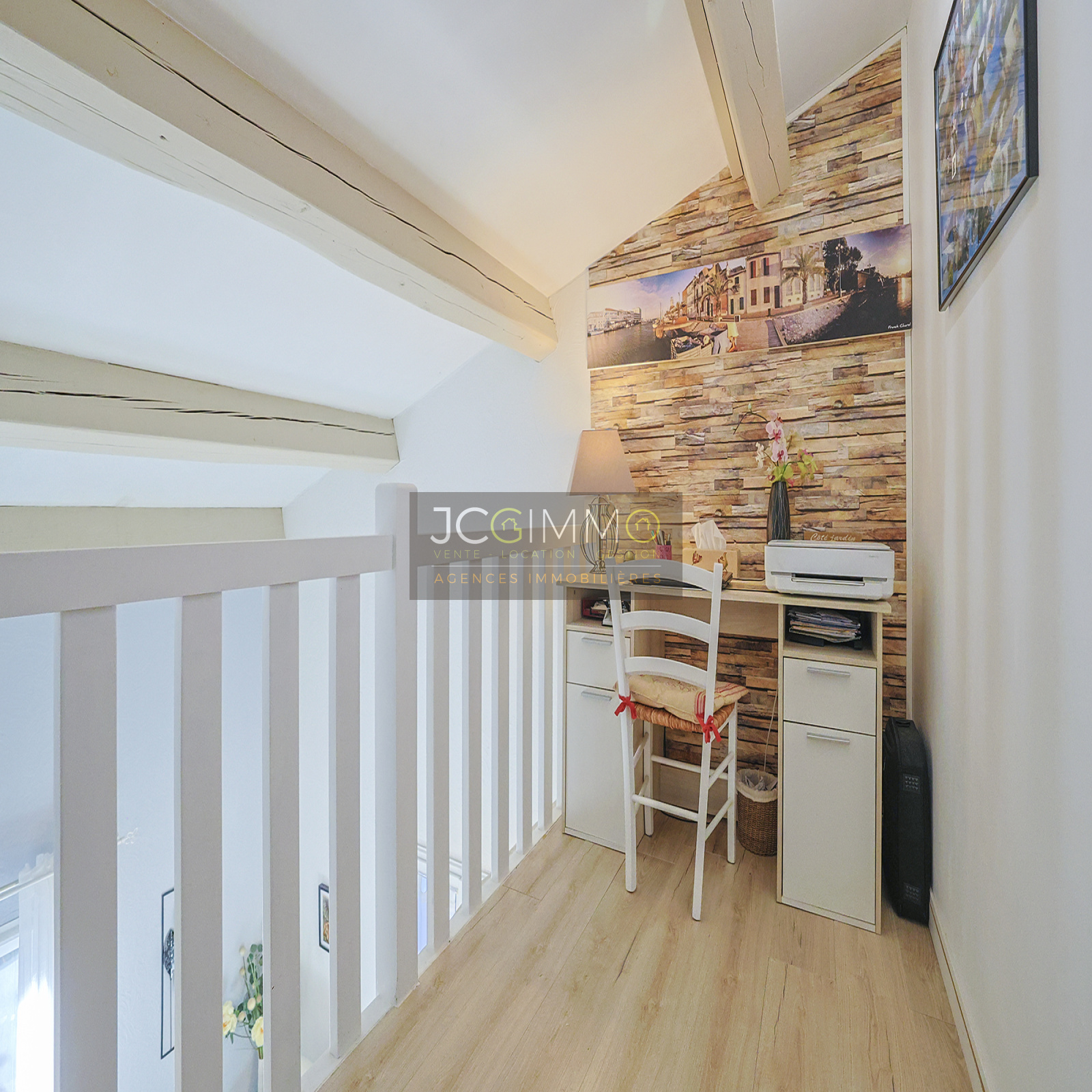 Au premier étage : deux chambres, un bureau en mezzanine, une salle d’eau, WC.