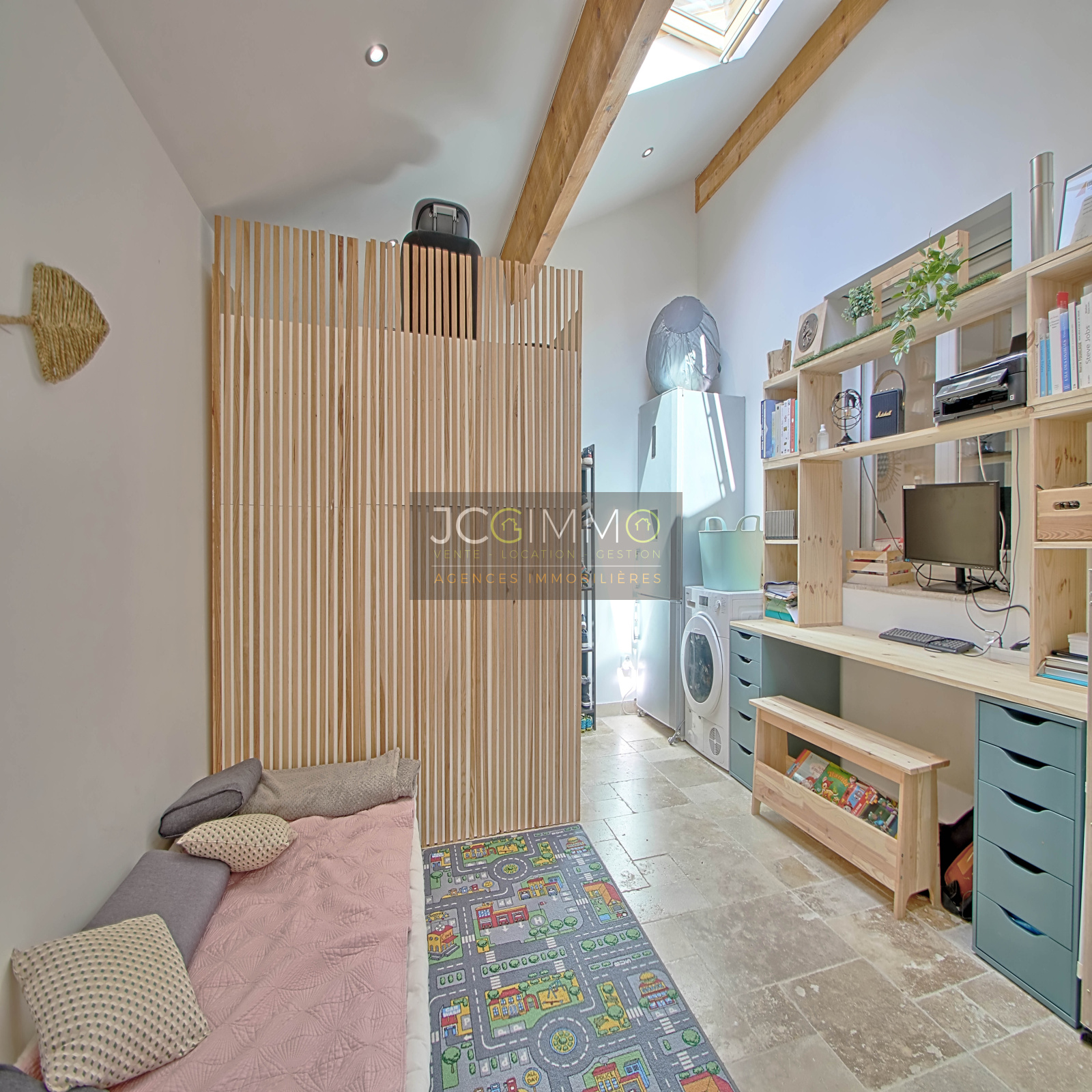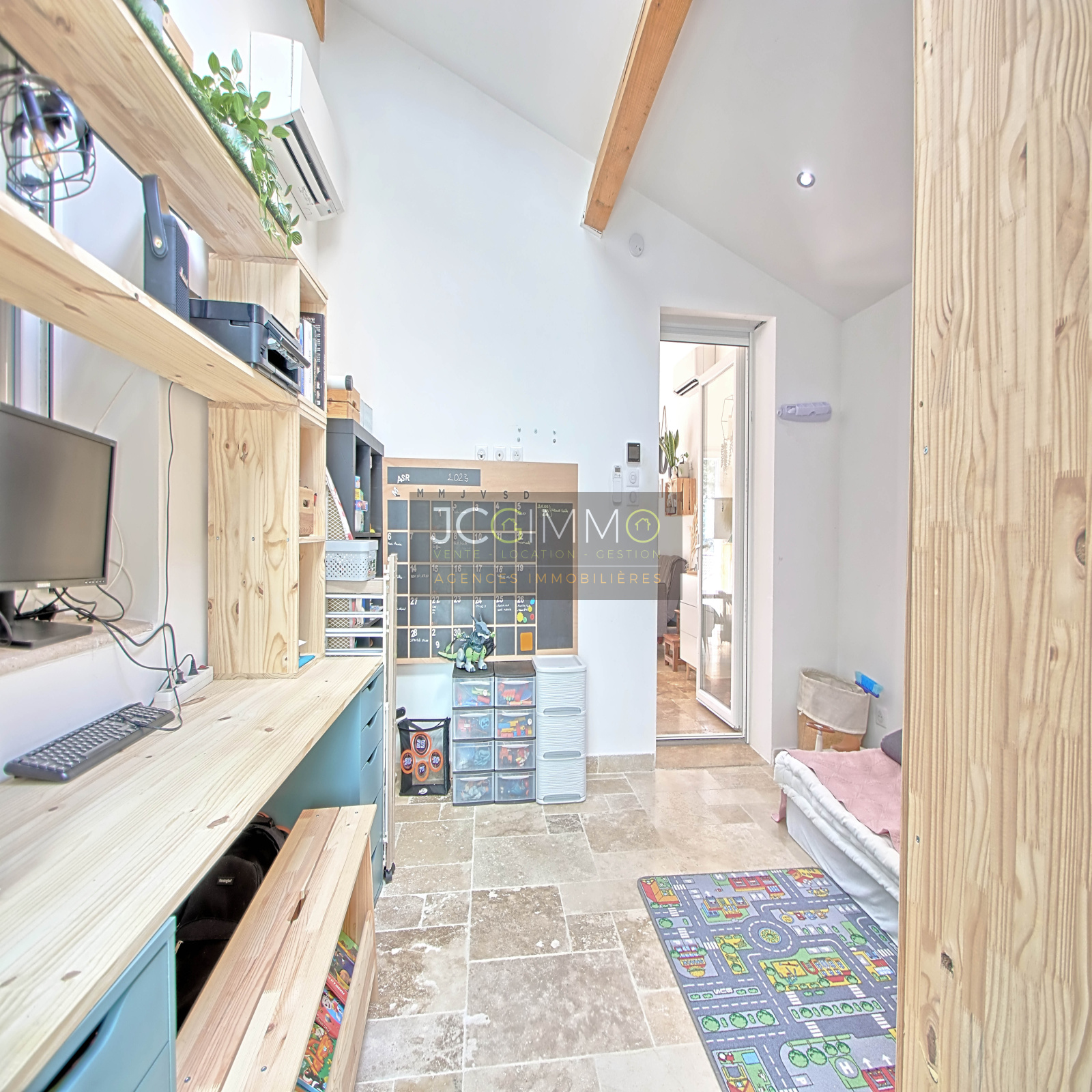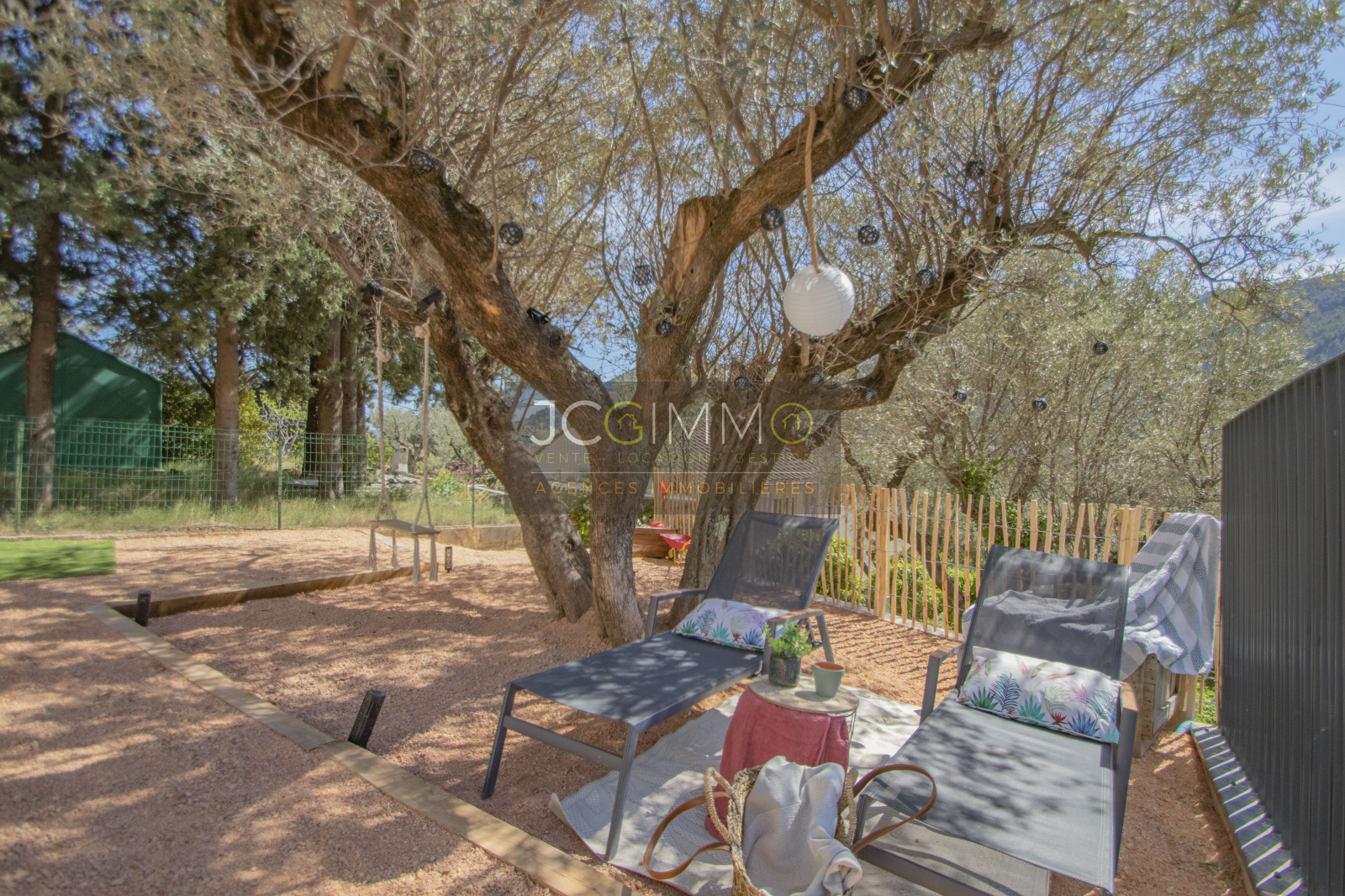 A l'extérieur : Un espace de vie extérieur avec une grande terrasse et un superbe jardin baigné par le soleil et agrémenté d'un très bel olivier pour vous garantir une ombre tant recherchée durant les belles journées d'été. A l’avant de la villa vous trouverez un petit cabanon de rangement très pratique et un espace ouvert pour garer aisément tous vos véhicules sous de superbes oliviers.
