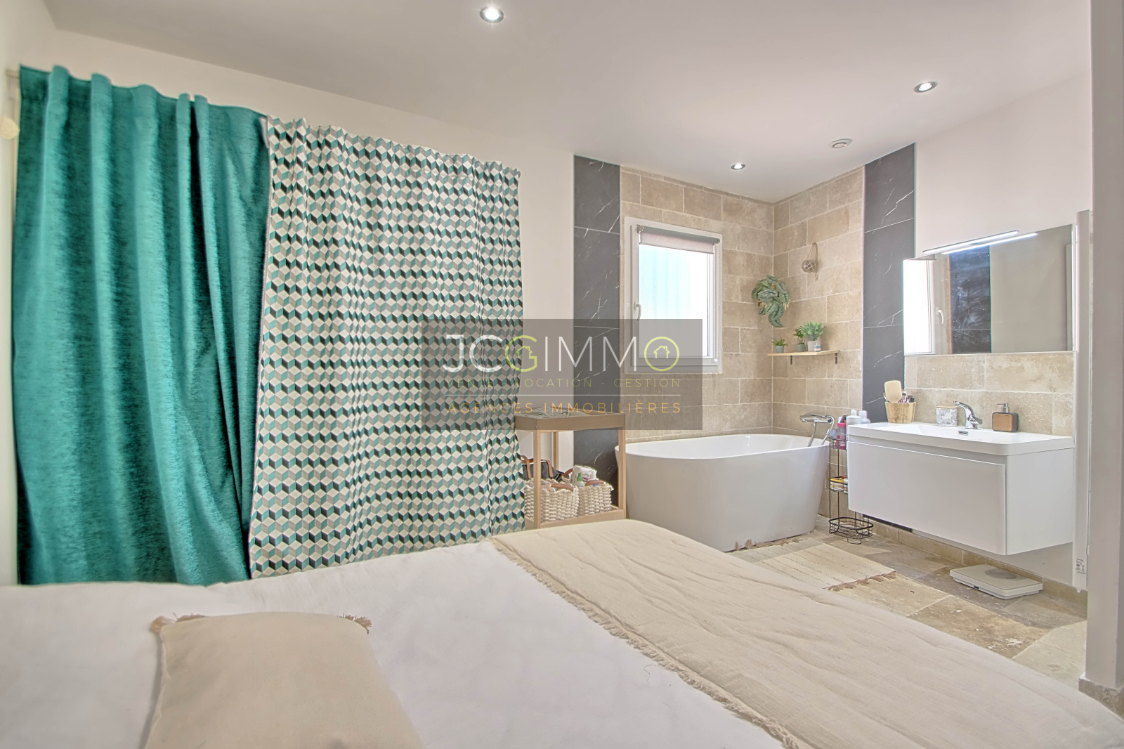 Prestations : Norme RT 2012, Double vitrage intégral, Fenêtre PVC, Volets motorisés, Chauffage par climatisation réversible, Vide sanitaire, Store banne, Sol intégralement recouvert de travertin. Eau de ville. Assainissement tout à l'égout. Villa sous garantie décennale.