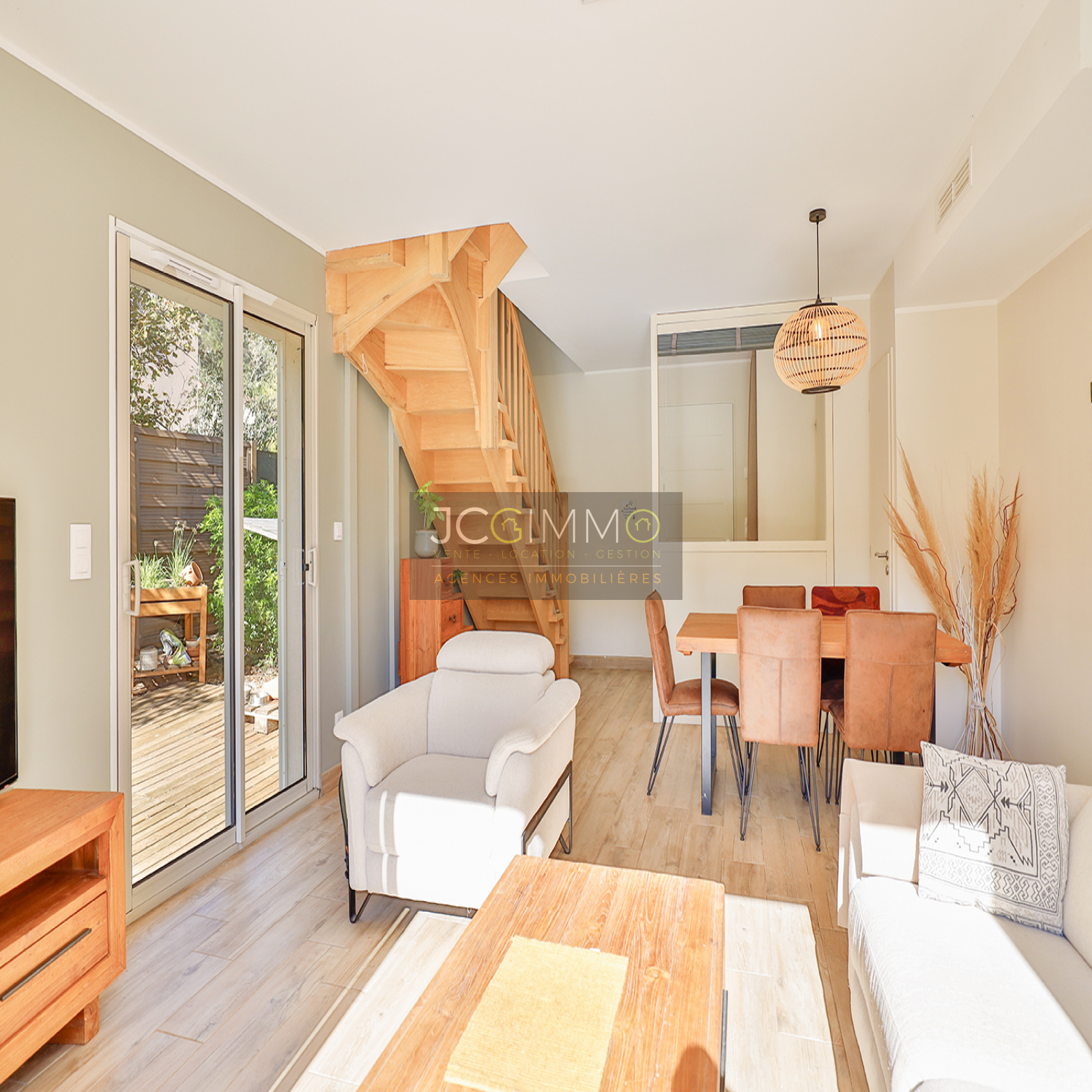 PRESTATIONS : Norme RT 2012, Double vitrage intégral, Chauffage par GAINABLE !, Baie à GALANDAGE 2,40m, Volets motorisés, Chauffe-eau thermodynamique, Store banne motorisé, Eau de ville, Assainissement tout à l’égout, Vide sanitaire… sans oublier que la Villa est de 2018 sous garantie décennale (dommage ouvrage).