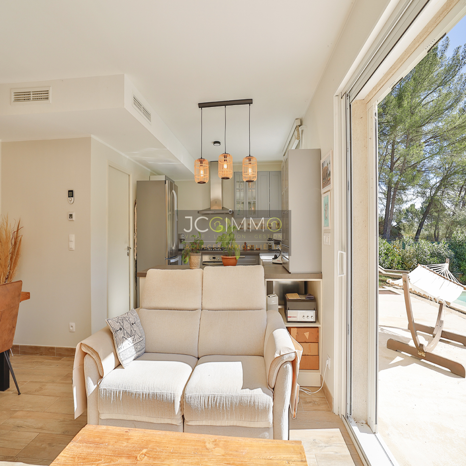 La villa est très lumineuse grâce à son orientation plein sud et bénéficie d'un ensoleillement maximum ETE comme HIVER SANS AUCUN VIS A VIS.