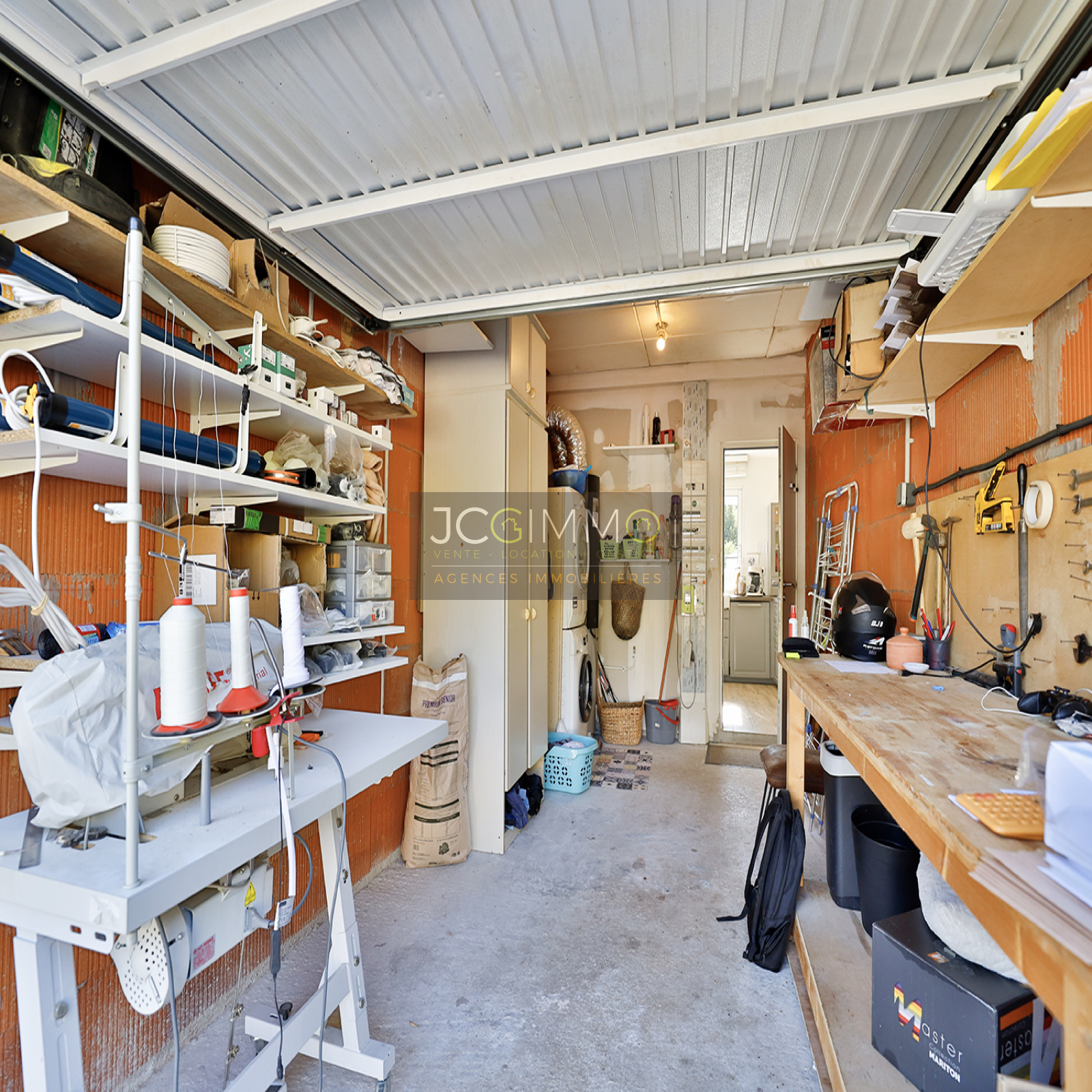 A noter : L’espace de vie, séjour/salon/cuisine, a un accès direct au garage intégré de 15m² avec coin buanderie.