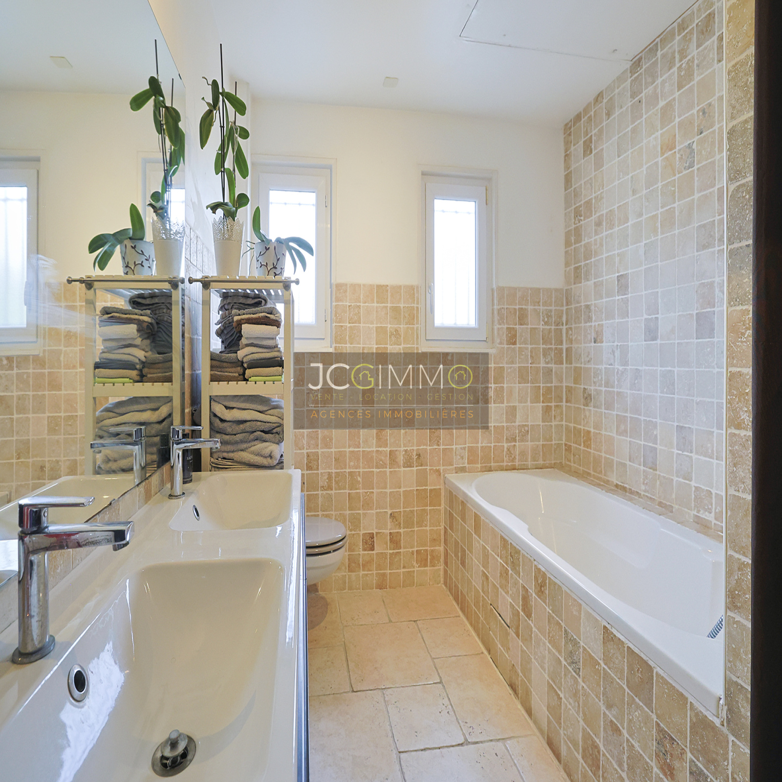 PRESTATIONS : Fenêtres double vitrage intégral, Baie alu, Portes fenêtres et fenêtres PVC, Volets bois (neufs), volet baie motorisé, Chauffage par climatisation réversible, sol carrelé ... fibre installée.
