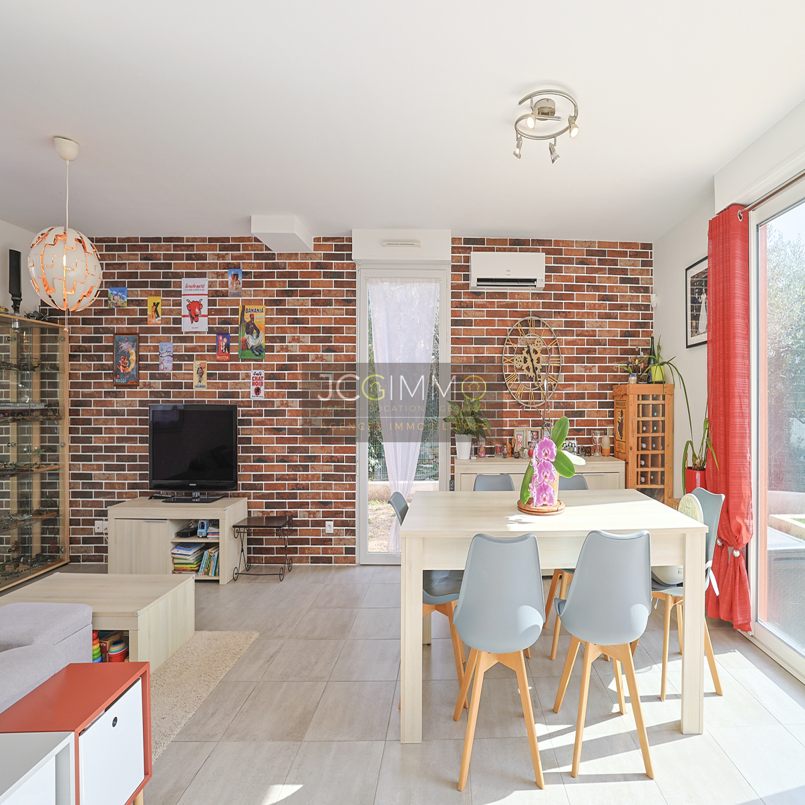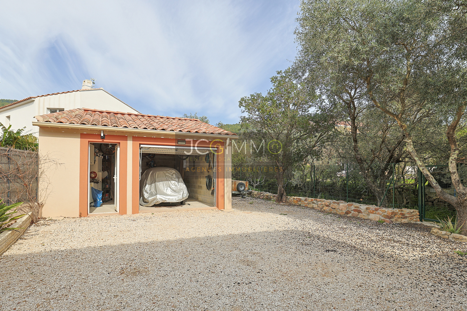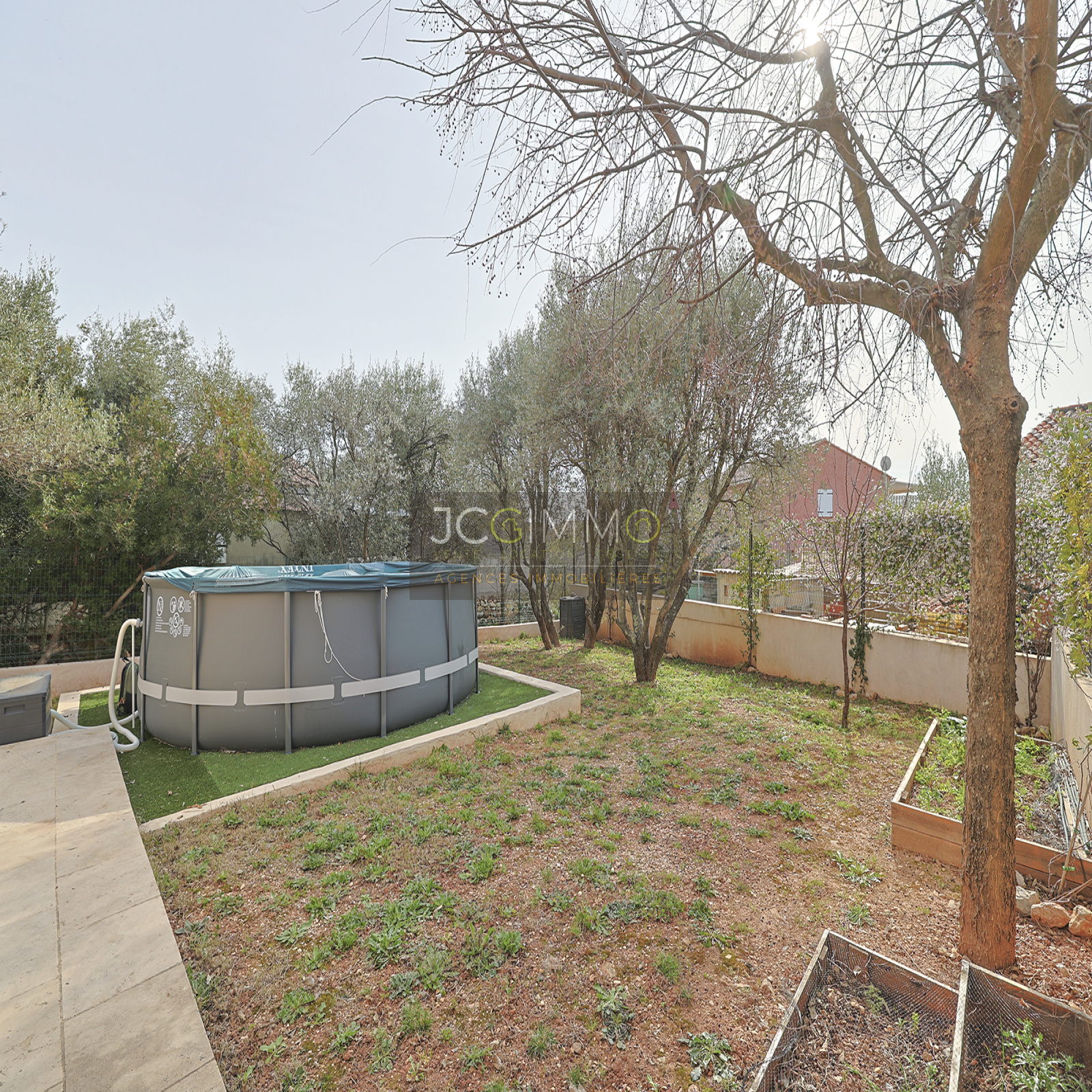 La villa est individuelle (mitoyenne 1 côté), elle totalise 95 m² habitables + garage indépendant de 26m² + une piscine hors sol tubulaire, le tout sur un terrain entièrement clos de 582 m² avec portail alu motorisé.