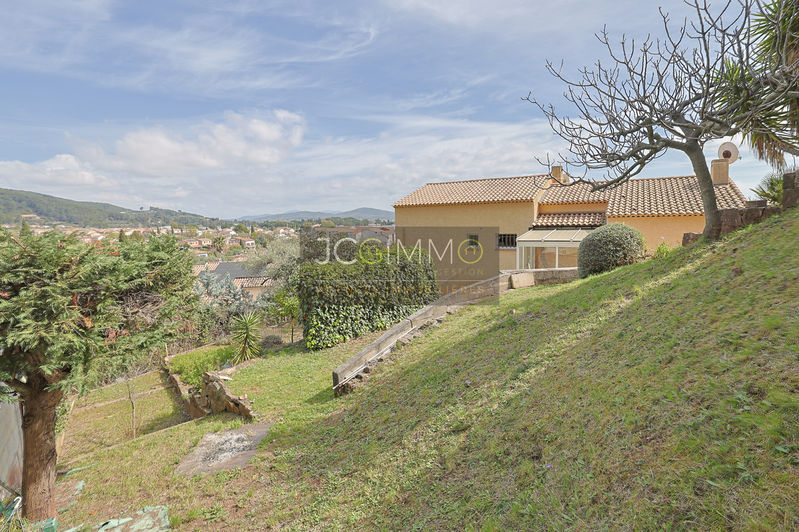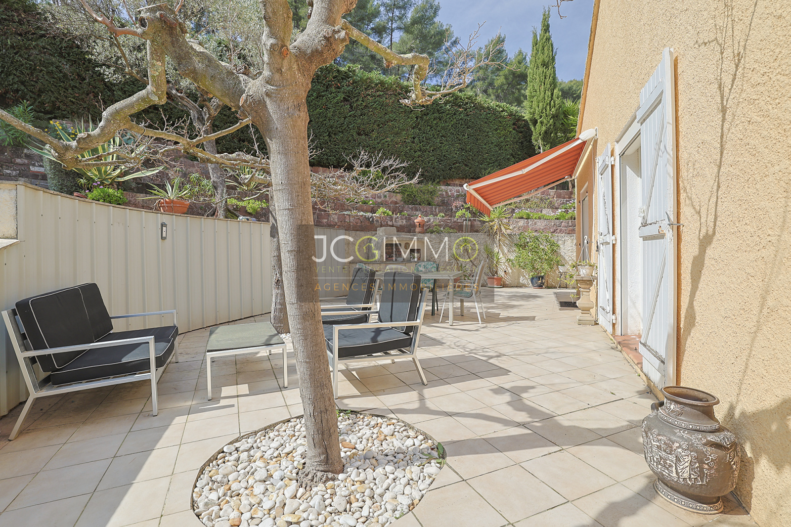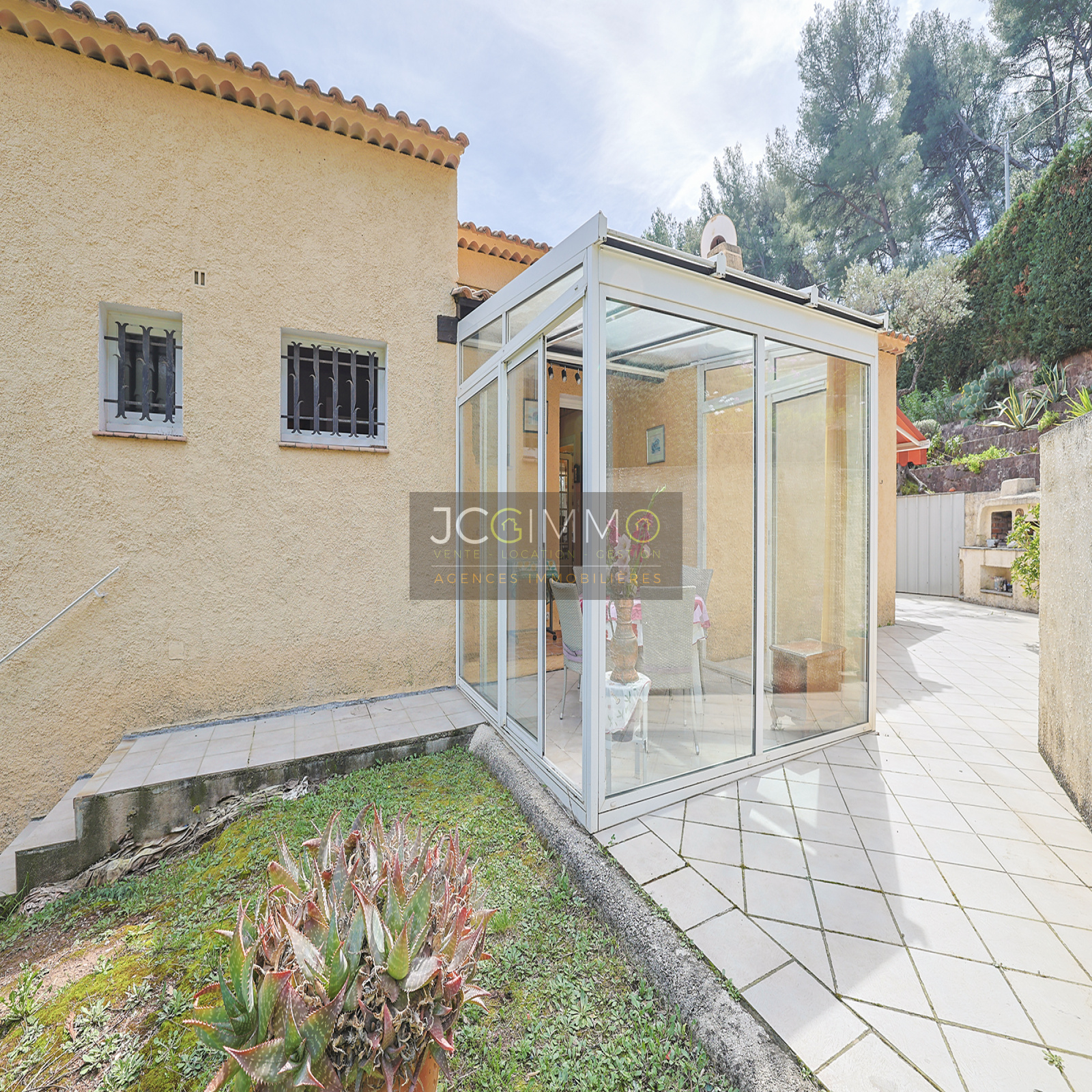 Le terrain de 1200 m² est entièrement clos avec portail et portillon. Il est très joliment arboré, bien entretenu et aménagé d'une VERANDA de 9 m², d'un espace BBQ et d'une grande terrasse de 75m² !. Il est constituée de belles restanques avec l'endroit idéal pour l'installation d'une piscine enterrée à l'abri de tous les regards (terrain piscinable).
