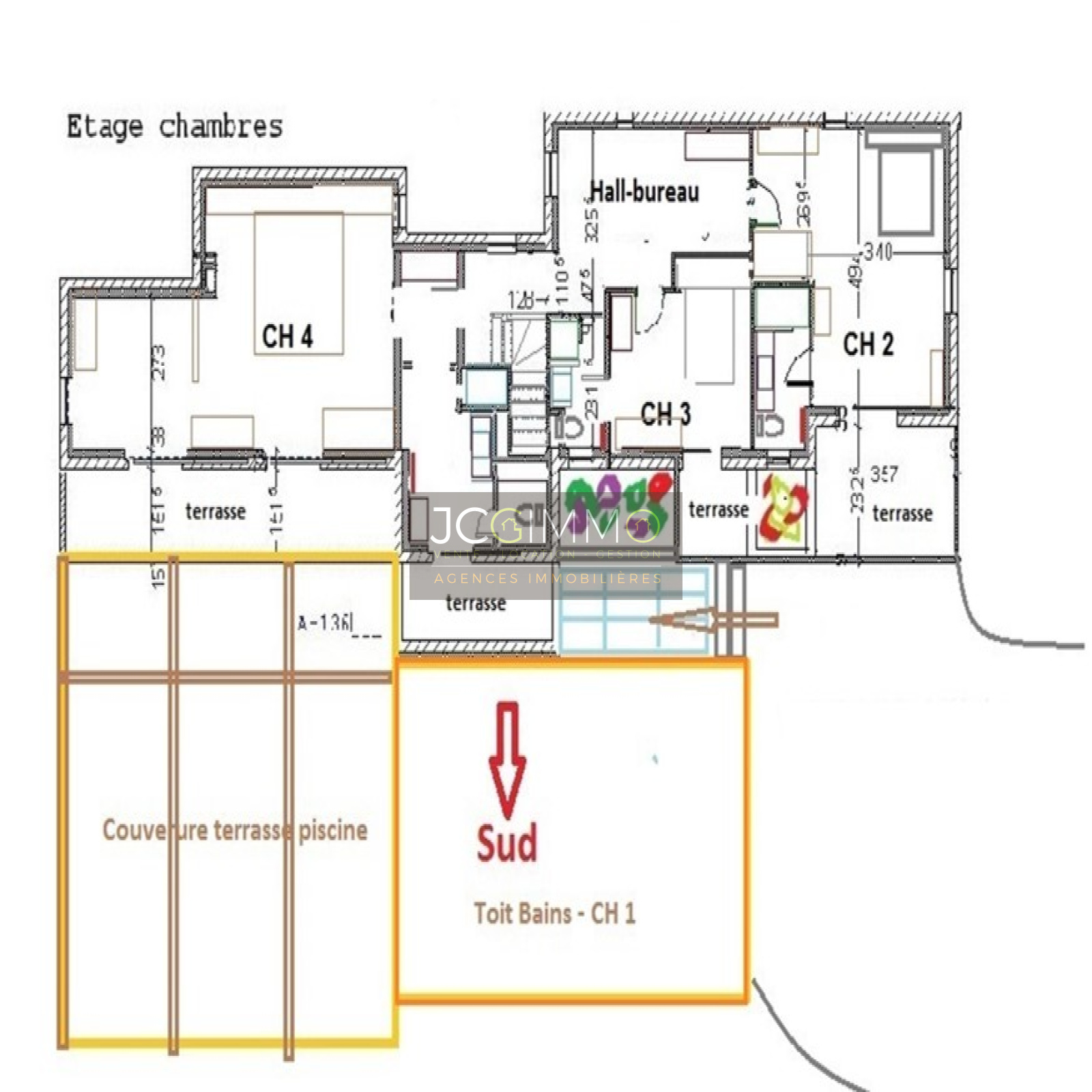 4 grandes chambres de type SUITE (18m², 24m², 16m², 44m²) avec chacune salle de bains ou salle de douches et WC : 1 SUITE au RDC et 3 SUITES A L'ETAGE dont une immense suite parentale de 44 m². Toutes les suites bénéficient d'une terrasse plain sud avec vue imprenable.