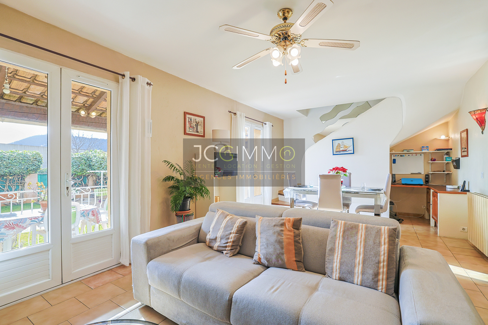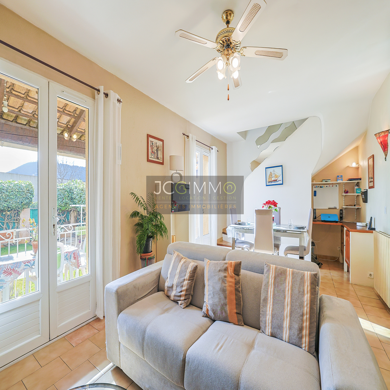 JCG IMMOBILIER vous présente EN EXCLUSIVITÉ cette VILLA T4 exposée PLEIN SUD de 95 m² habitables, construite en 1985, avec garage, terrasse couverte et cabanon extérieur.