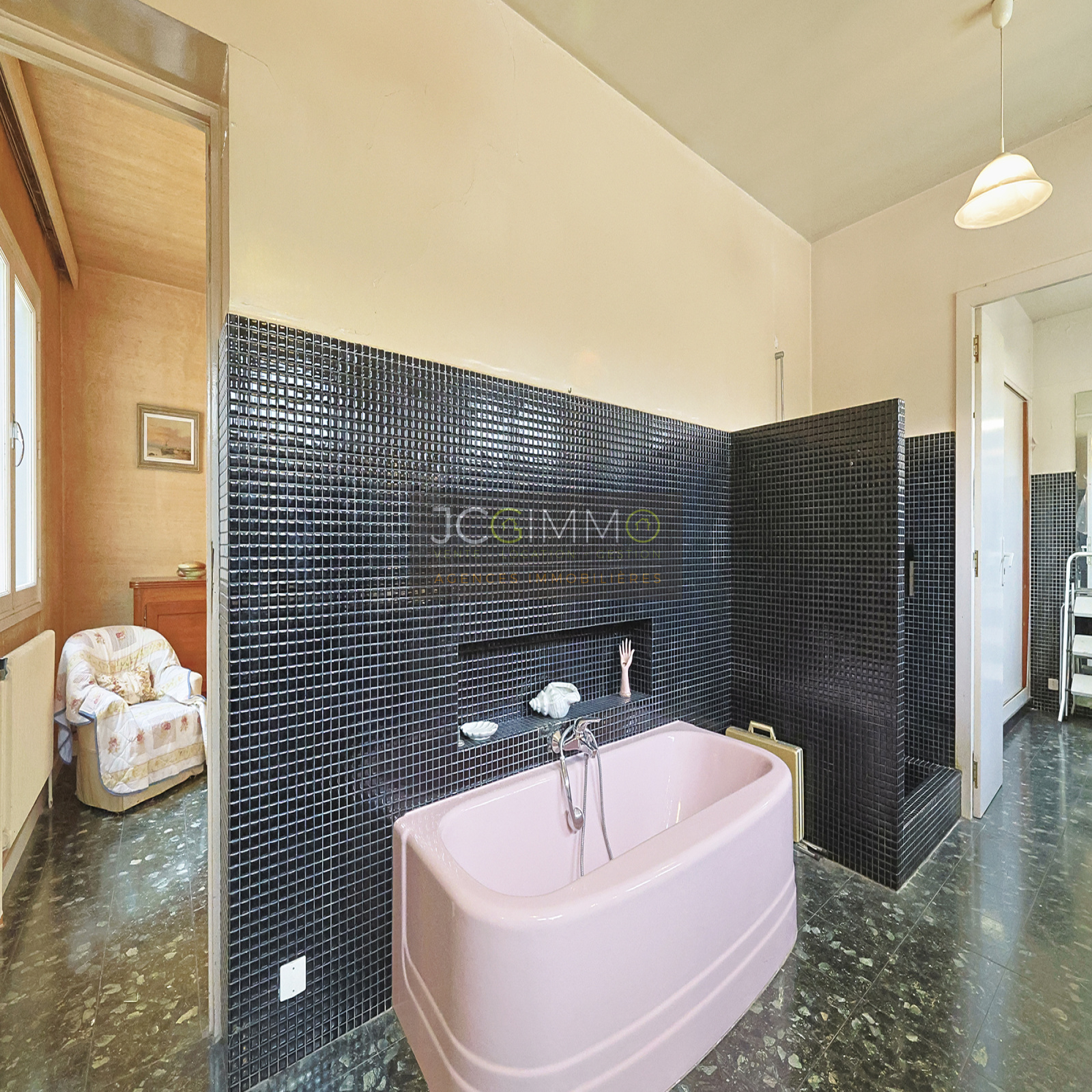 Le terrain clos et plat de 1 297 m² laissera votre imagination se développer afin de prolonger l’aménagement et le paysagement actuel en fonction de vos goûts. Un figuier et autres essences méditerranéennes sont déjà plantés. A noter que le terrain est piscinable (cf. PLU en vigueur zone UB) !