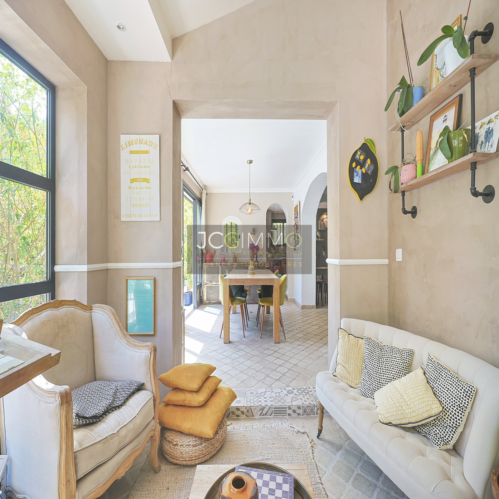 COTE JOUR : Une belle entrée (6 m²) s'ouvre sur un bel espace de vie de 75 m² TRES LUMINEUX (Double Salon / Salle à manger / Cuisine ouverte), Cellier/Buanderie (11 m²), WC indépendant
