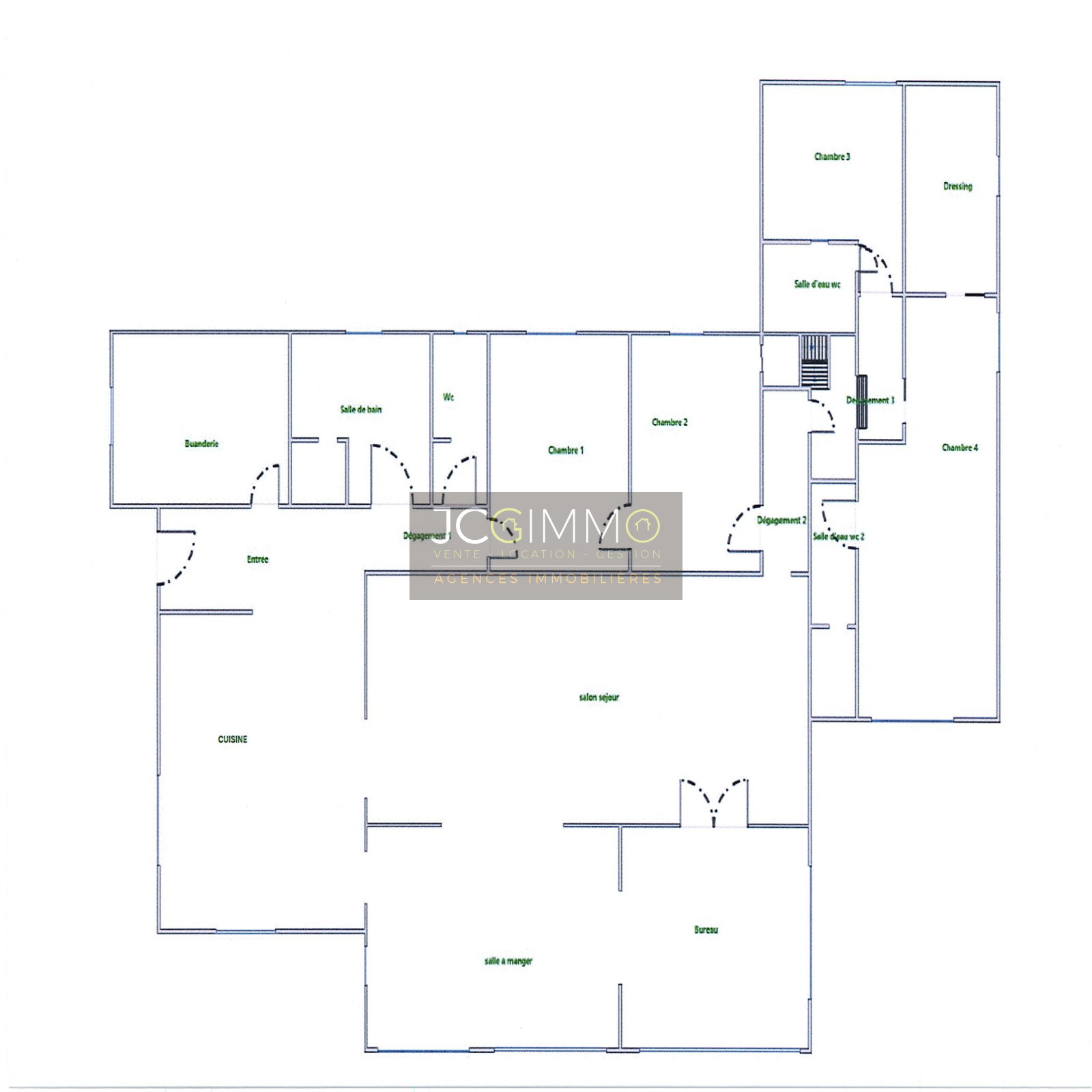COTE NUIT : 1 Suite complète de 29 m² (avec salle de douches/wc et dressing), 1 suite de 15 m² (avec salle de douches/wc), 2 chambres (12,3m² et 13m²), et Salle de bains&douches (8 m²)