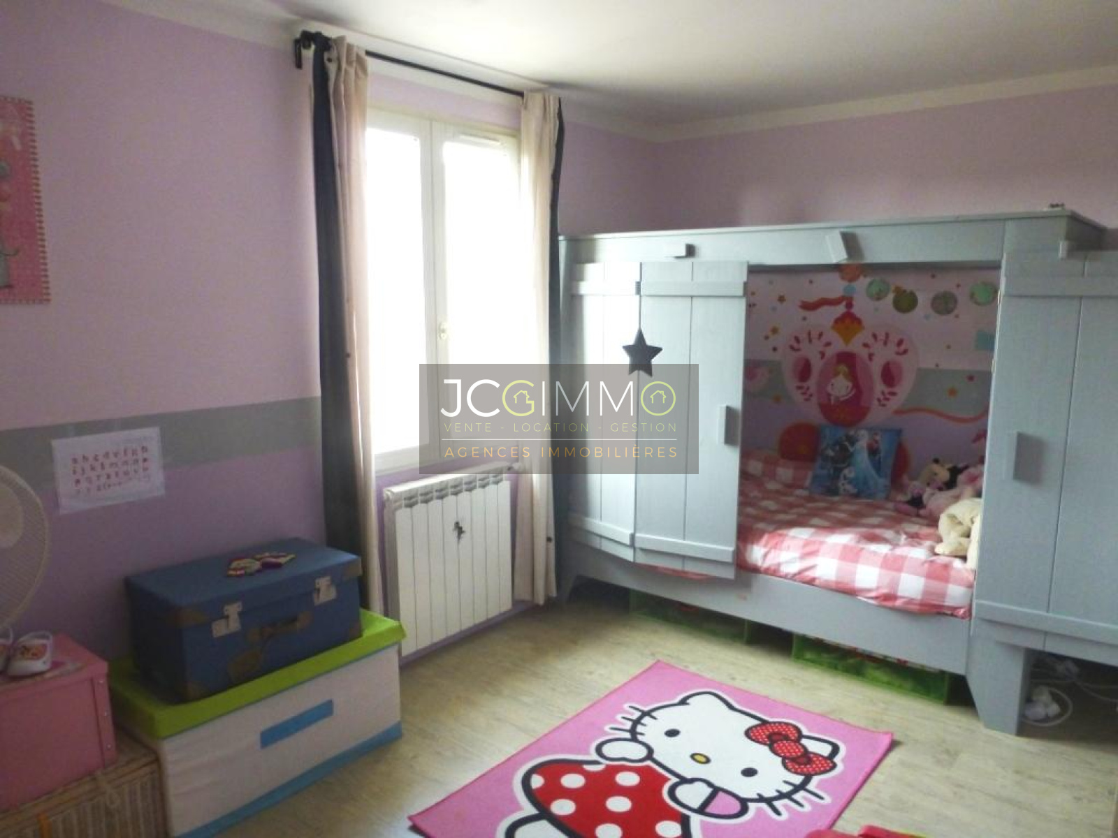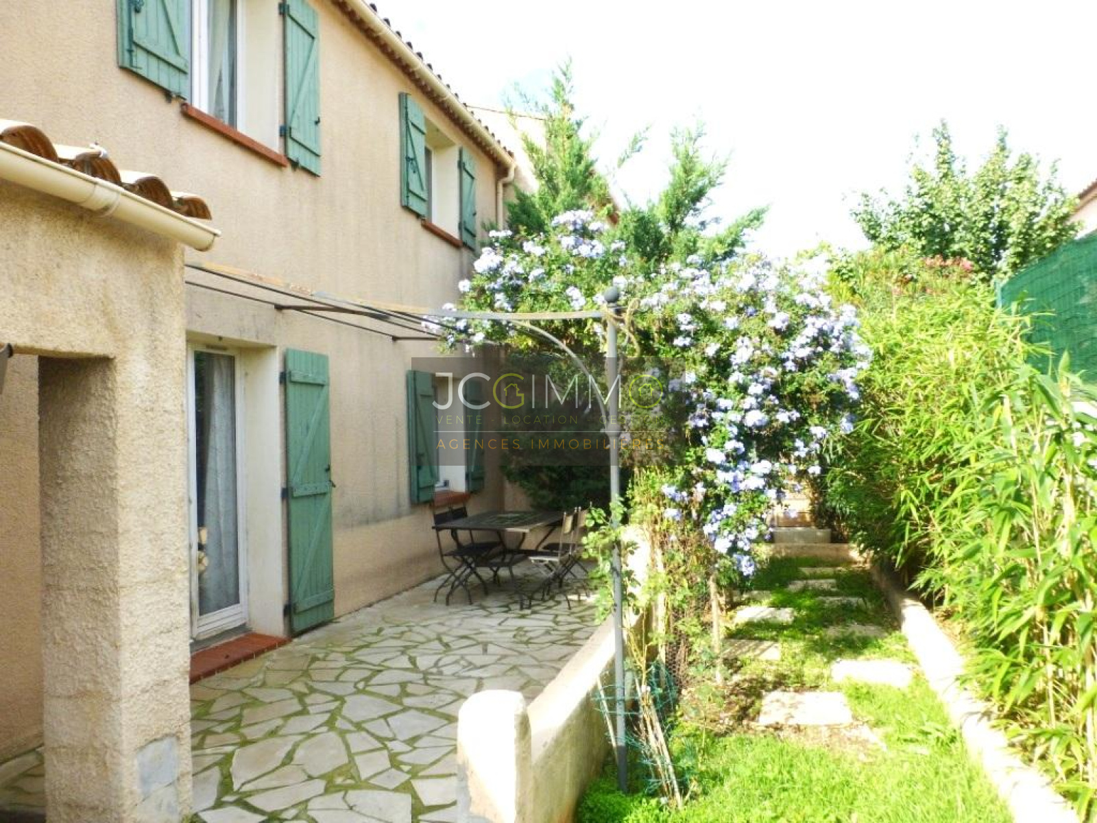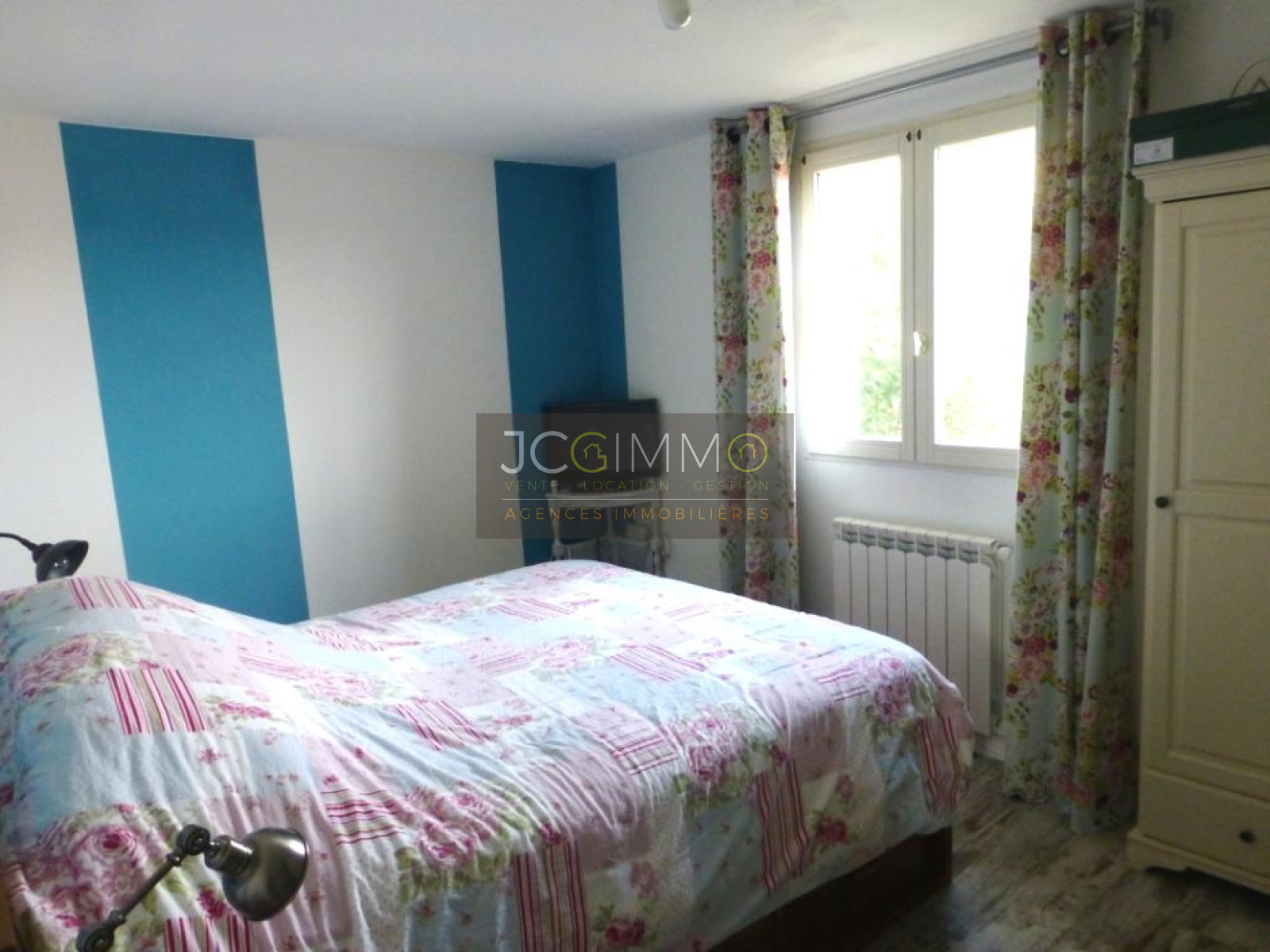 SOLLIES-PONT: Au calme et proche des commodités, villa T5bis mitoyenne d'un côté comprenant au rdc: salon séjour avec cheminée insert, cuisine aménagée et équipée, 1 bureau, salle d'eau avec wc intégré. A l'étage: 4 chambres, une salle de bains et WC séparé. Grand garage + place de parking intérieure, 2 terrasses Est et Ouest. Jardin clos de 218 m².
