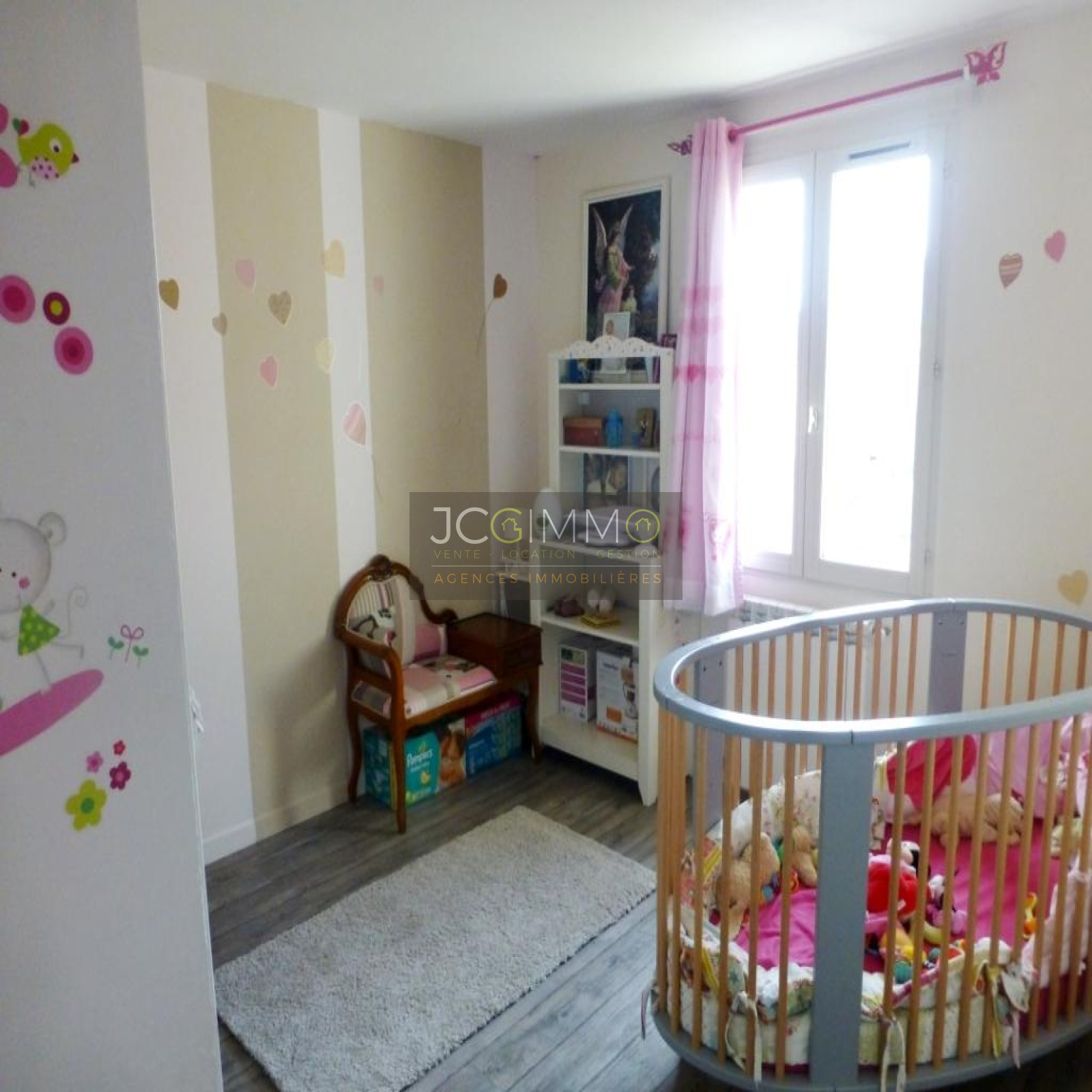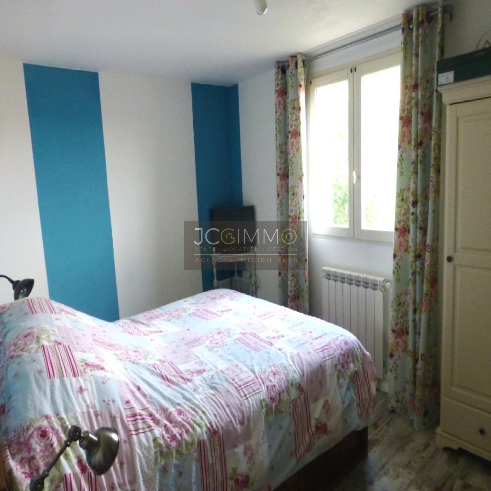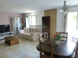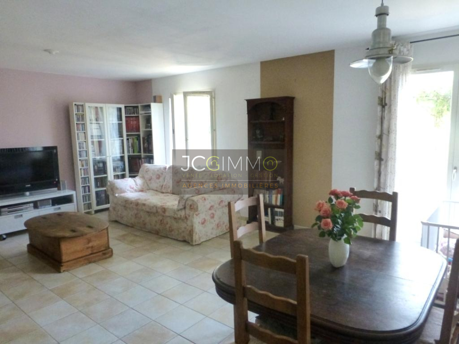 SOLLIES-PONT: Au calme et proche des commodités, villa T5bis mitoyenne d'un côté comprenant au rdc: salon séjour avec cheminée insert, cuisine aménagée et équipée, 1 bureau, salle d'eau avec wc intégré. A l'étage: 4 chambres, une salle de bains et WC séparé. Grand garage + place de parking intérieure, 2 terrasses Est et Ouest. Jardin clos de 218 m².