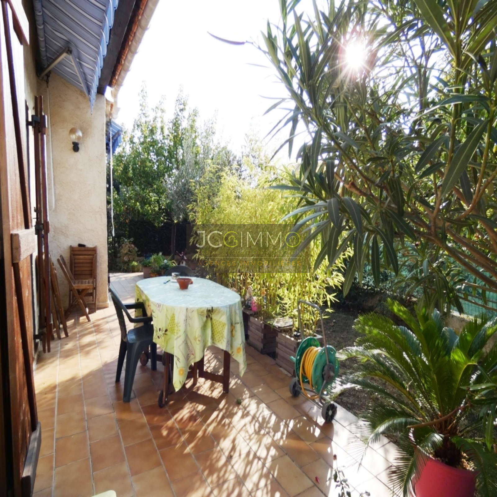 EXCLUSIVITE A SOLLIES PONT: Secteur Résidentiel recherché au calme absolu, Villa individuelle de PLAIN PIED avec Garage (non mitoyenne), de construction traditionnelle sur vide sanitaire en PARFAIT ETAT sur 400 m² de terrain clos SANS VIS A VIS. Elle se compose d'un grand Salon/Séjour de 35 m² donnant sur une terrasse Plein Sud, cuisine dînatoire équipée, cellier, 2 chambres dont 1 avec placard, salle d'eau, WC indépendant, rangements. Climatisation réversible. Accès au canal des arrosants.Place de stationnement intérieure. Ecole et centre ville à pied. A VISITER SANS TARDER!