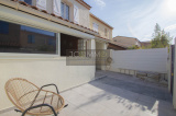 A l'avant de la maison vous trouverez un portillon (possibililité de garer une moto à l'intérieur) et un très bel extérieur entièrement carrelé et un grand porche couvert pouvant acceuillir poussette, vélo ...