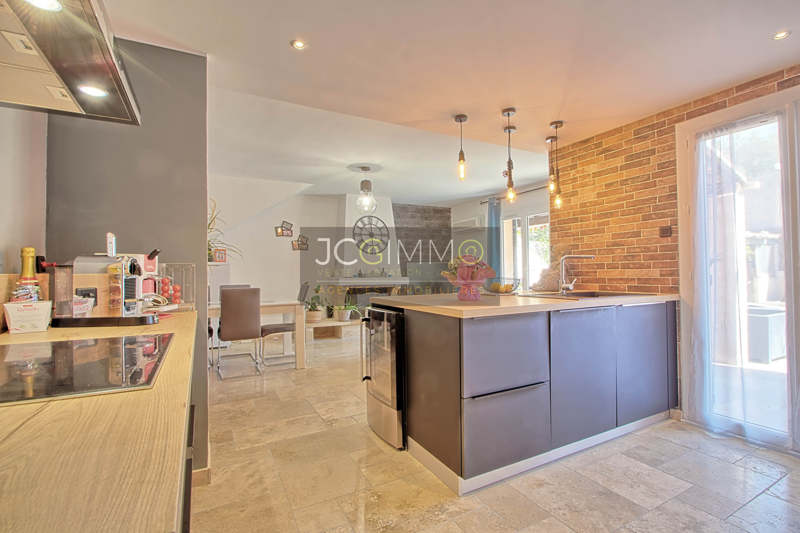 SOLLIES PONT (secteur résidentiel, proches toutes commodités), JCG IMMOBILIER vous propose en EXLUSIVITE et NULLE PART AILLEURS, cette jolie villa mitoyenne de construction traditionnelle (1983) d’une surface de 85 m² env + Combles aménagés de 20m² env et Garage de 12m² env, le tout sur un terrain clos de 222m².