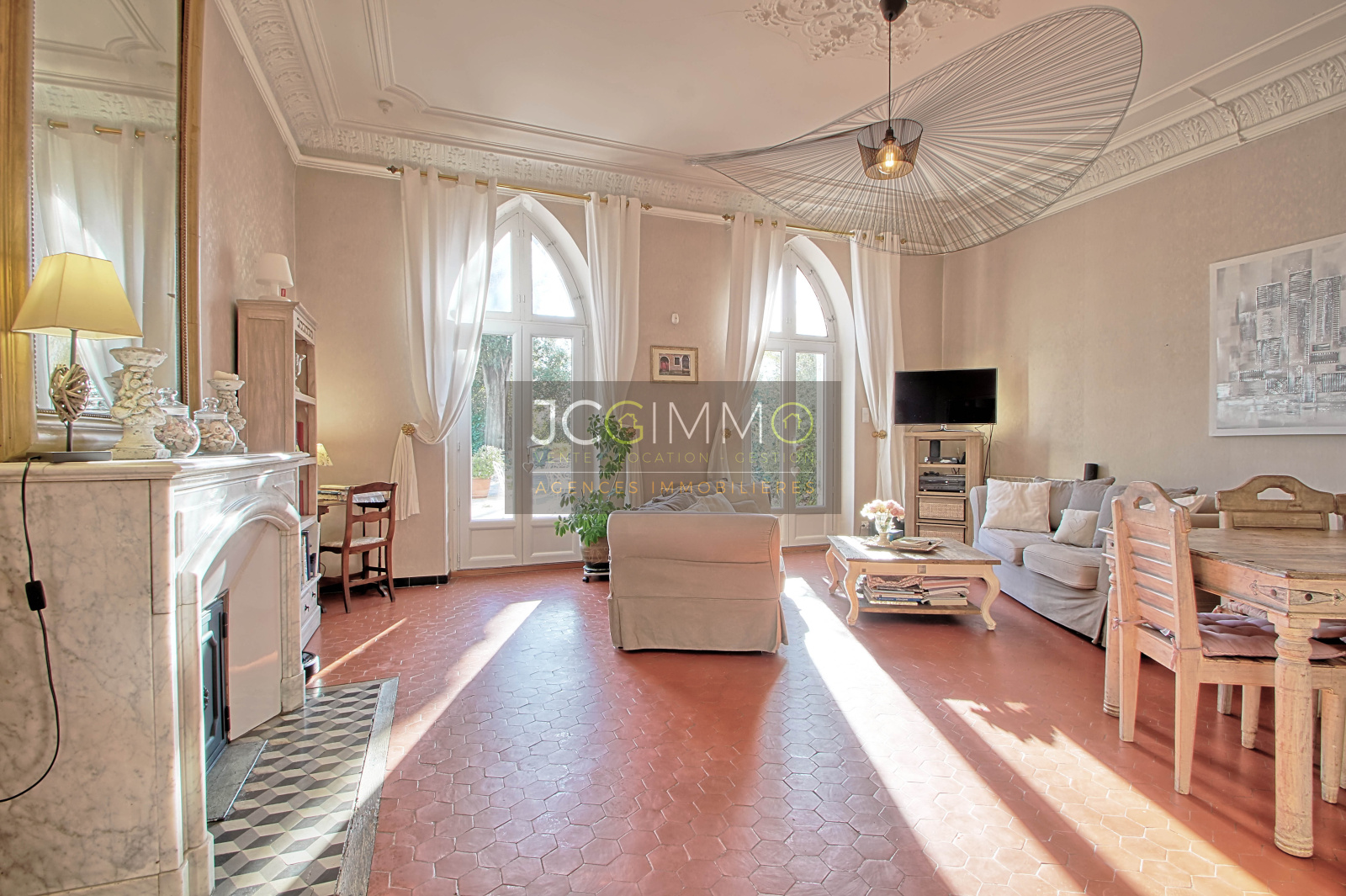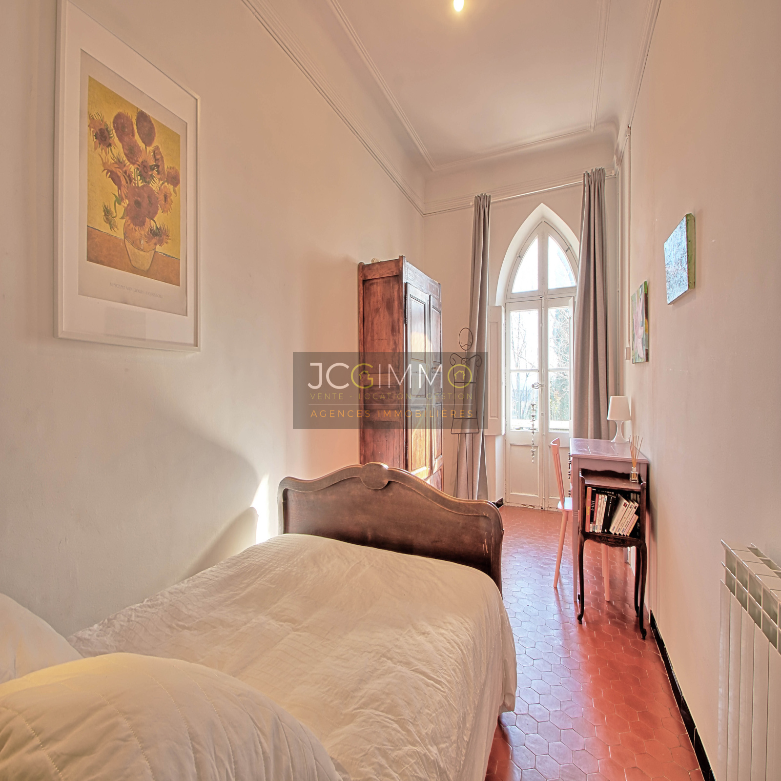 Vous apprécierez sa grande hauteur sous plafond, sa belle luminosité grâce à son orientation Sud-est / Sud-ouest, la conservation de ses tomettes aux sols, ses cheminées d’époque et son architecture générale.