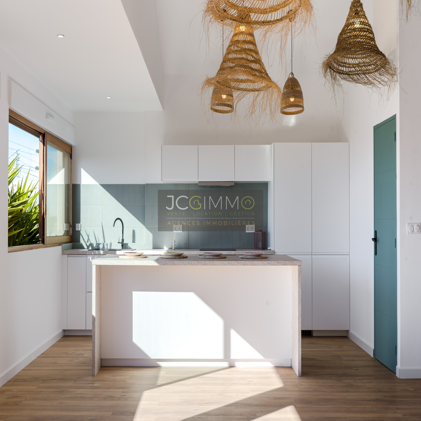 Nous avons particulièrement apprécié les volumes généreux de la pièce de vie, la luminosité offerte par l’exposition sud avec vue mer, la rénovation intégrale réalisée avec soin, le dernier étage au calme ainsi que l’absence totale de charges, élément devenu particulièrement recherché sur le marché local.