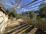 A L'EXTERIEUR : Terrasse bois DOMINANTE de 56 m² PLEIN SUD avec coin ombragé, Douche extérieure, WC Toilette sèche, Réserve d'eau de pluie complémentaire de 2m3.