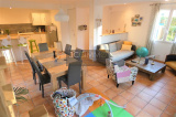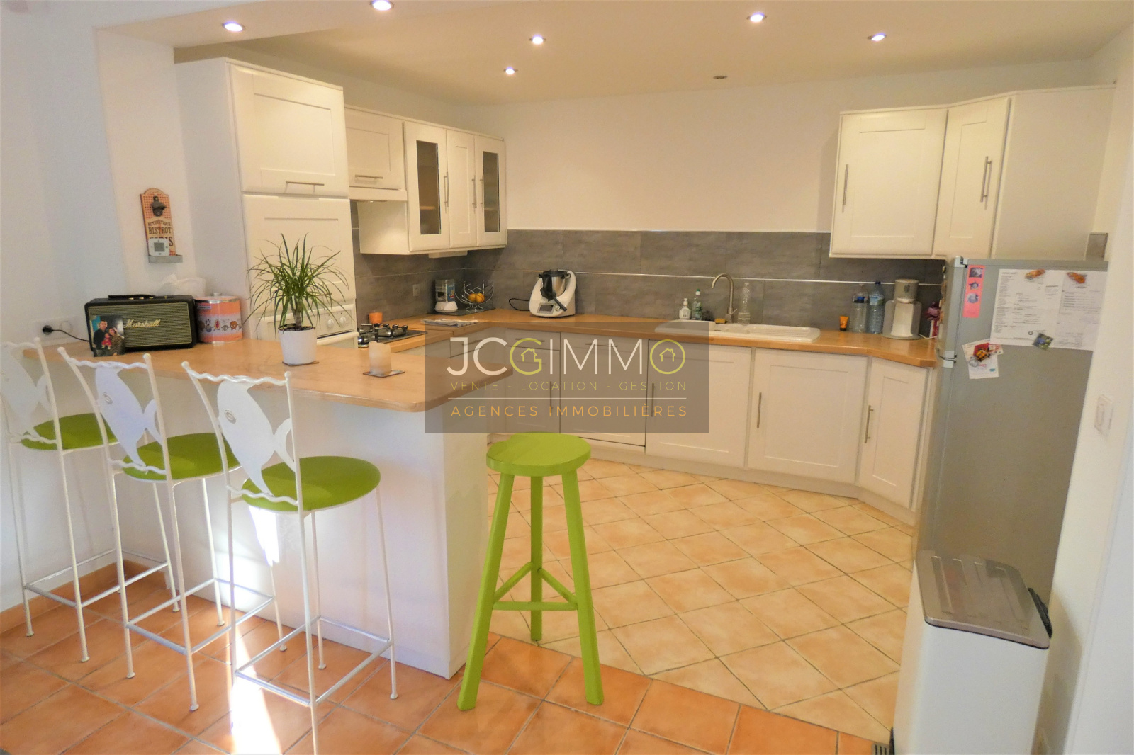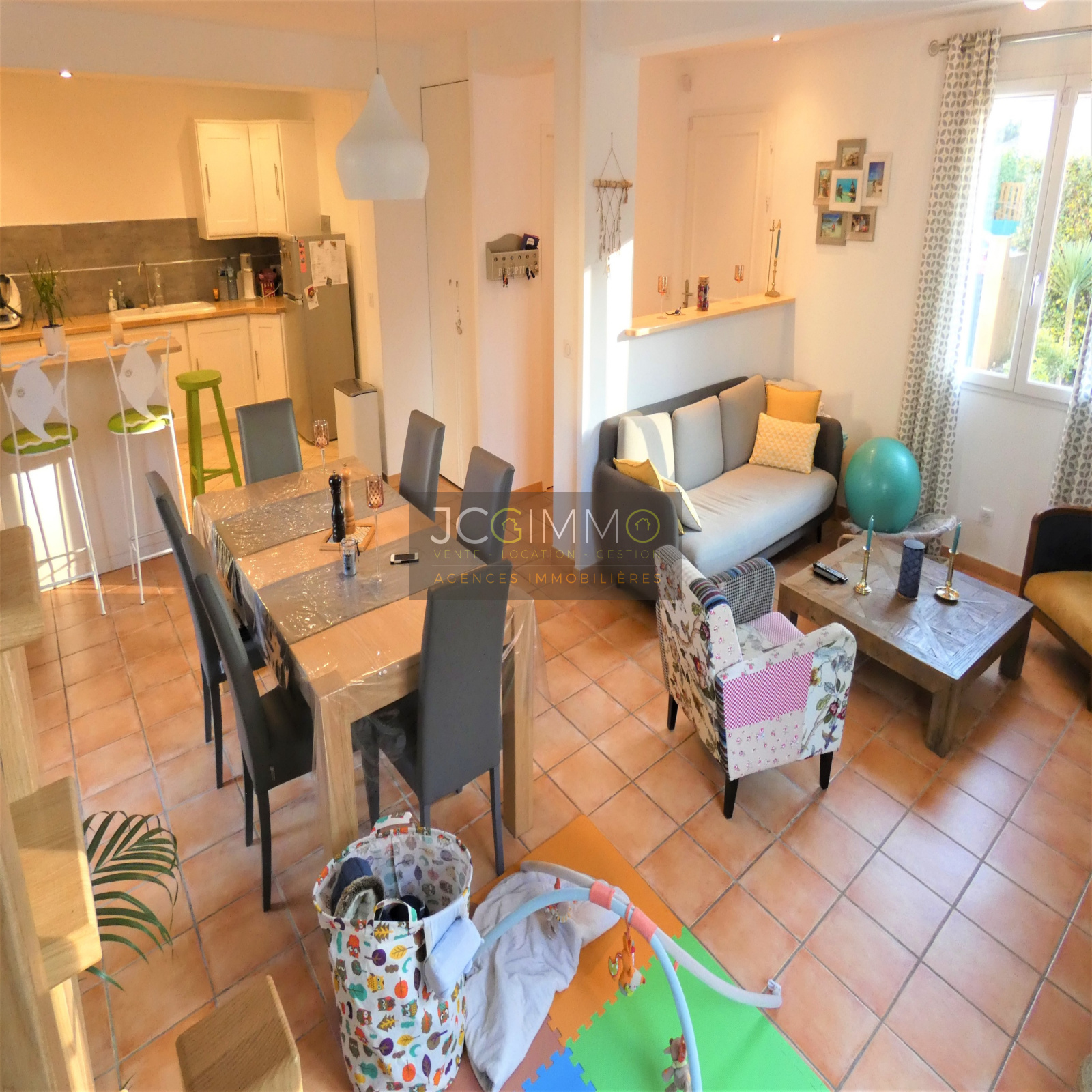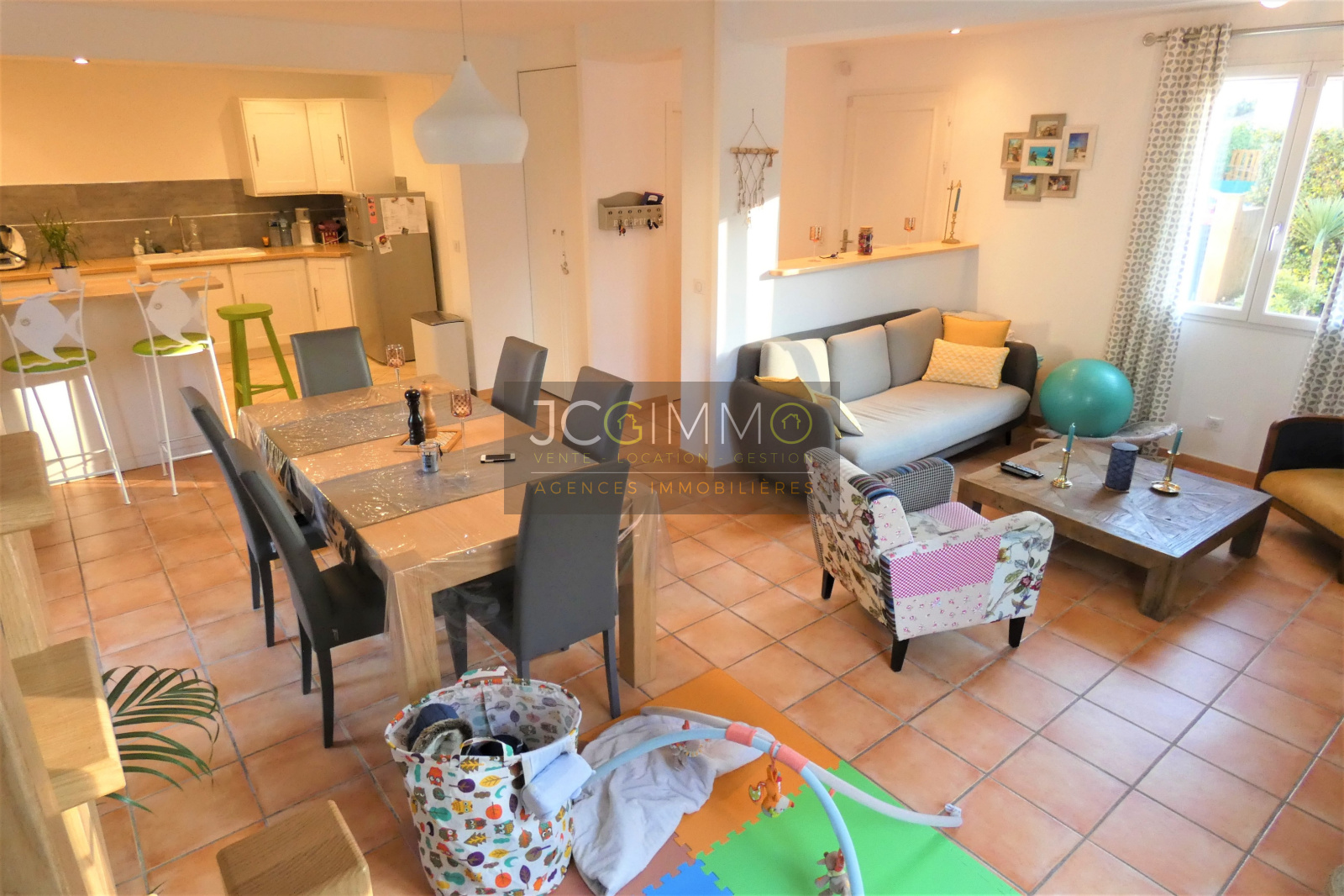 Carnoules : au calme dans un lotissement privé avec faibles charges ! Elle se compose au rez-de-chaussée d'un vaste séjour/cuisine US équipée d'environ 45m² avec poêle à bois et porte fenêtre donnant sur terrasse SUD/OUEST de 21m² avec belle pergola, un garage avec mezzanine et un wc indépendant. A l'étage, 3 chambres, un dressing et une salle d'eau avec wc. A l'extérieur, un abri à bois de 13m² et un abri de jardin. Villa rénovée récemment, aucun travaux à prévoir avec un terrain plat et entretenu. A saisir !