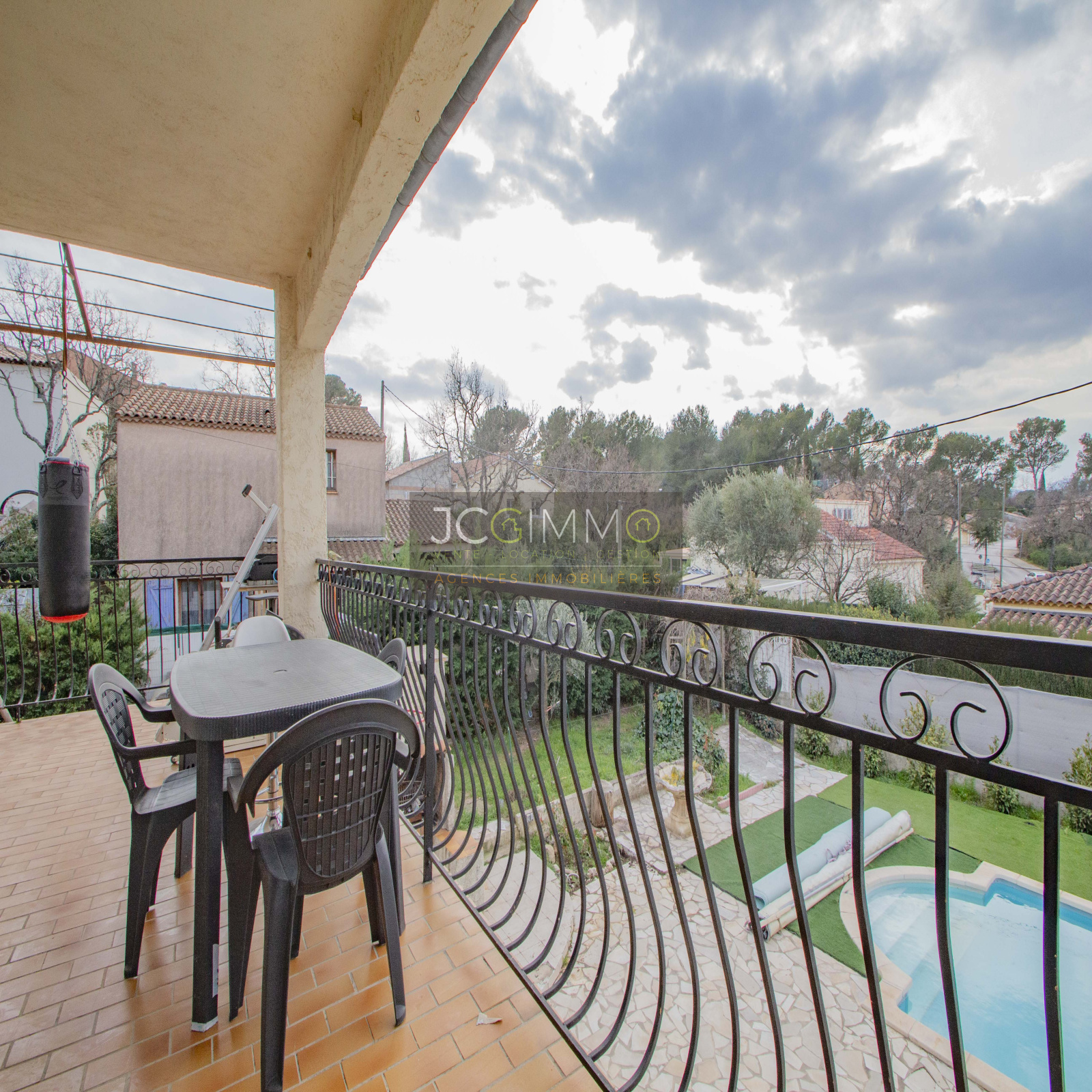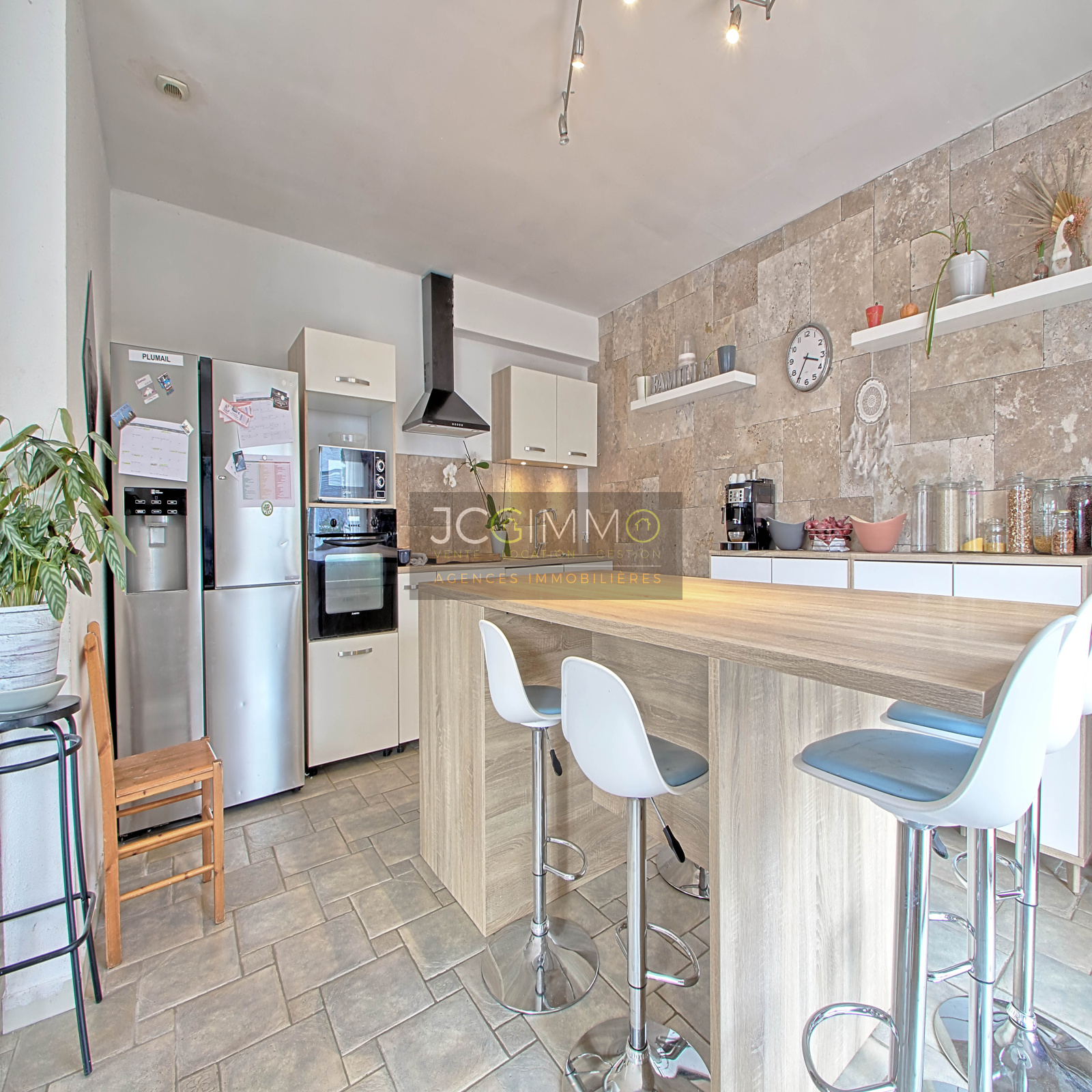 Le 2ème appartement à l'étage est T4 pour 104m² et se compose d'un dégagement d'entrée, un séjour/cuisine US de 40m² exposé SUD et OUEST donnant sur une terrasse tout autour de 31m² en totalité avec vue dégagée sur les collines, 3 chambres de 12,5m² minimum, une grande Sde et un et WC. Le plus, un sas avec escalier permettant d'accéder aux combles d'environ 90m² en partie mansardés et aménagables (dans un premier temps idéal stockage). Rénové avec climatisation réversible également.