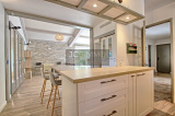Elle se compose au rez-de-chaussée : d'une belle entrée avec rangements, d'un vaste séjour / cuisine US avec grande baie alu donnant sur le jardin, une bureau pouvant servir de chambre, une buanderie, une chaufferie, une grande chambre de 15m², une salle de bains avec douche et baignoire et un WC indépendant.