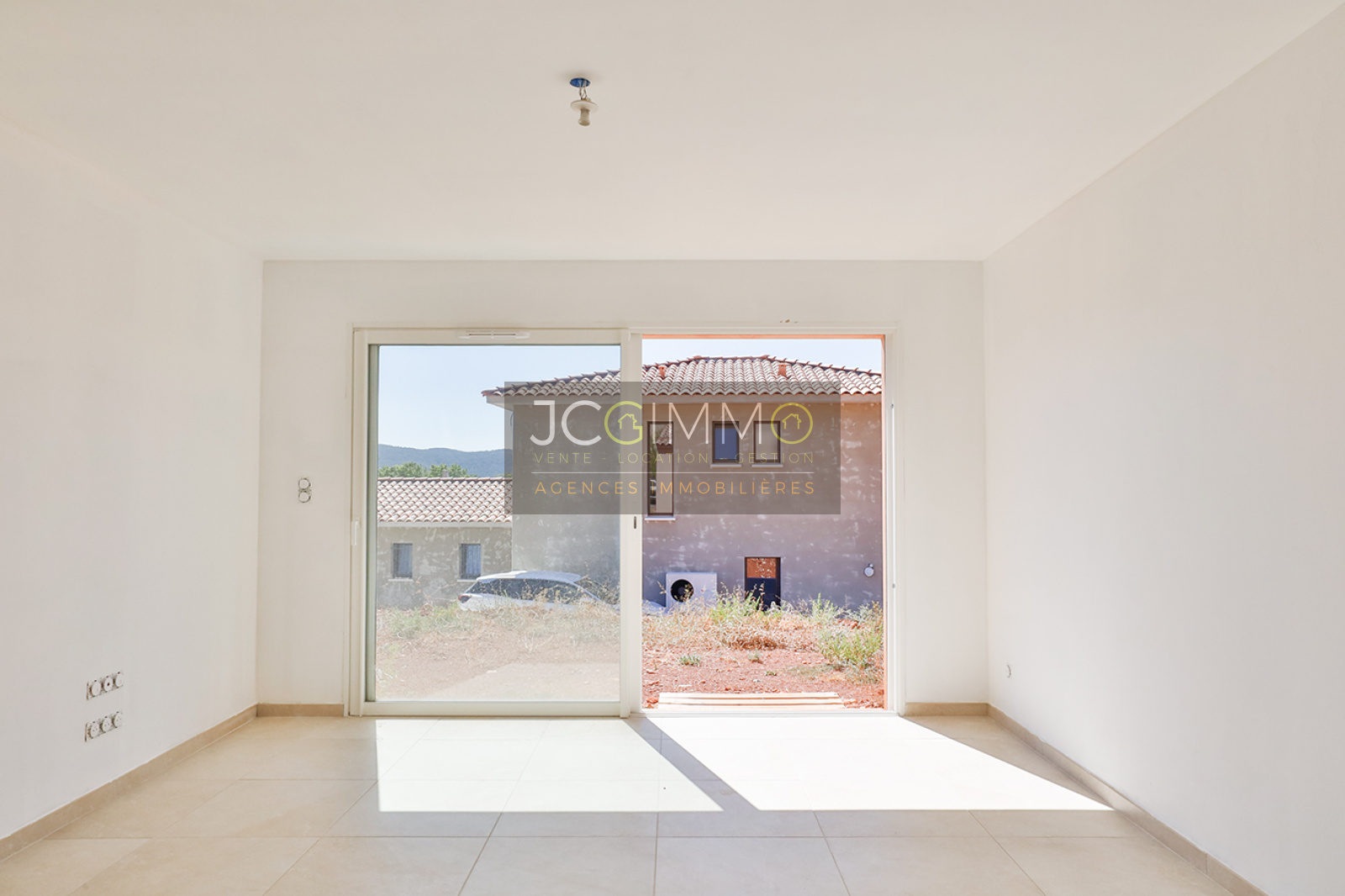 La villa est située dans un nouveau lotissement calme à la sortie de CARNOULES direction PUGET-VILLE, elle n'est pas mitoyenne et la totalité des aménagements extérieurs sont à prévoir.
