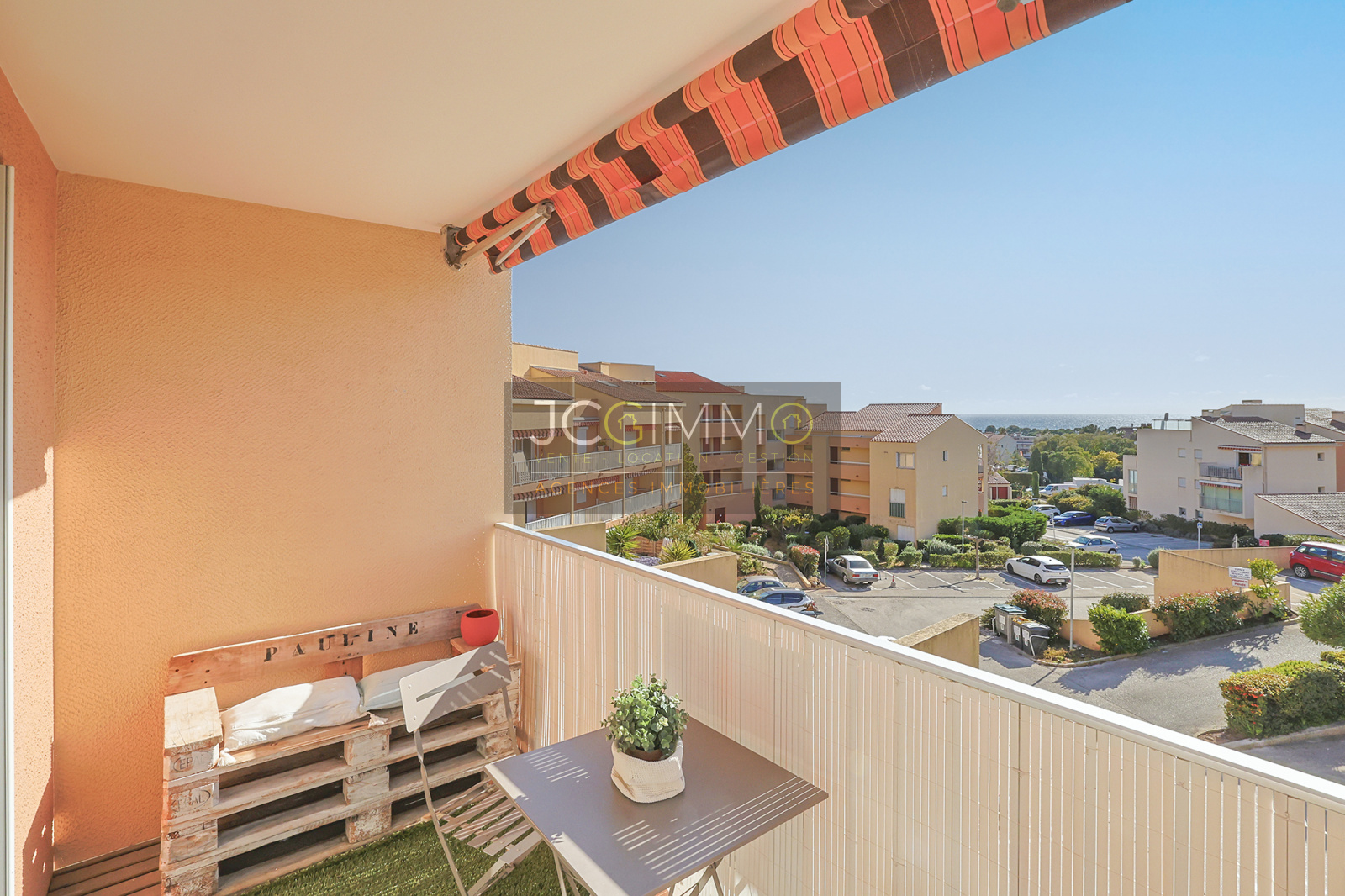 Description : Dès l'entrée, vous serez accueilli par un espace de vie fonctionnel. La cuisine est équipée, le salon lumineux s'ouvre sur une agréable terrasse de 5.40m², idéale pour se détendre en admirant les couchers de soleil sur l'horizon marin.