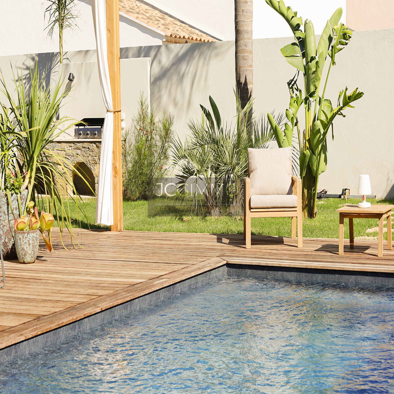 A l’extérieur, vous bénéficierez d’un terrain PLAT de 655 m² très soigneusement aménagé. Vous y découvrirez une belle piscine Traditionnelle avec un revêtement en PVC ARME, une cuisine d’été, une douche, ainsi qu’un local technique orné d’un superbe mur de pierre. Les extérieurs possèdent également plusieurs espaces terrasses dont une avec une pergola, idéale pour organiser de bons barbecues en famille/entre amis .