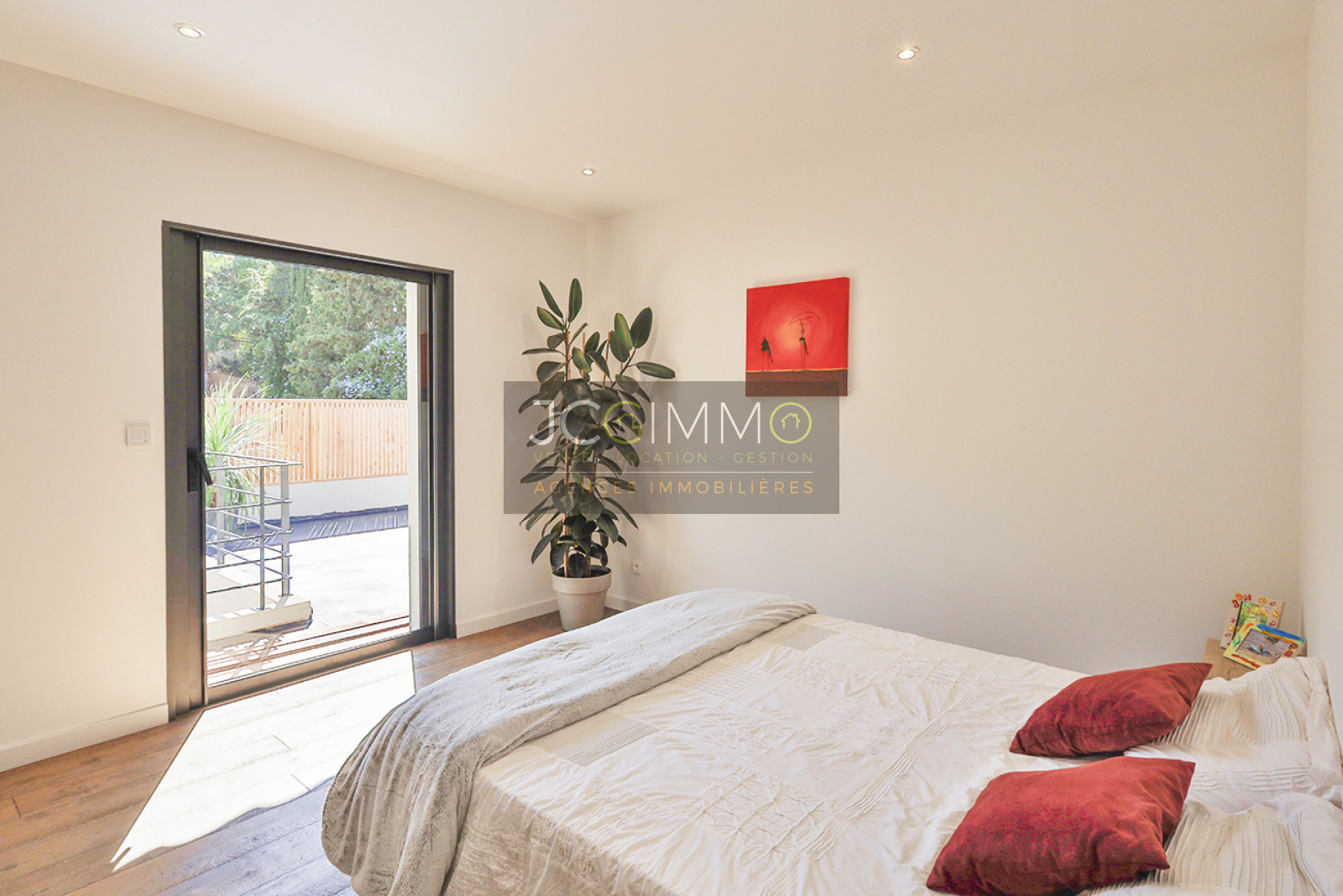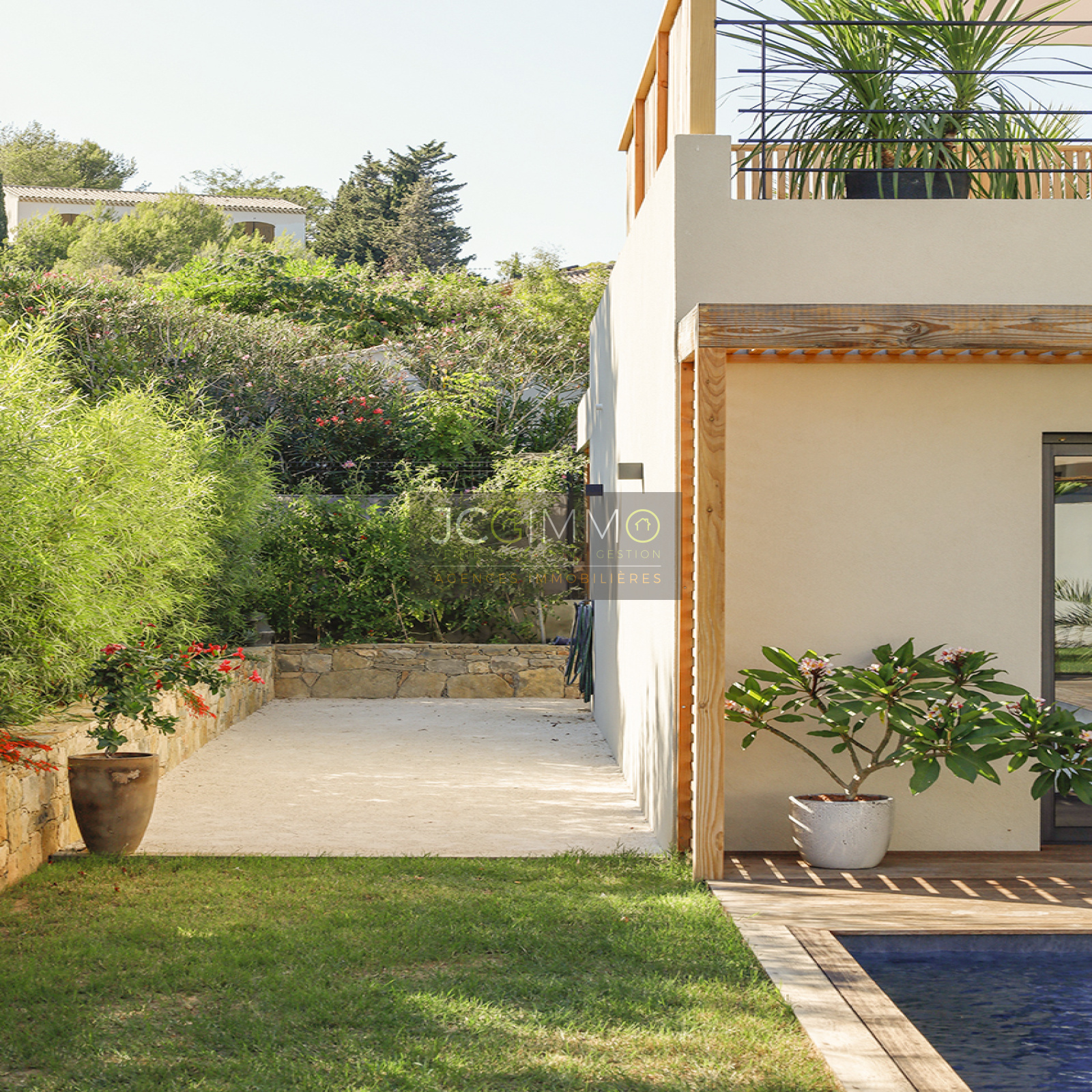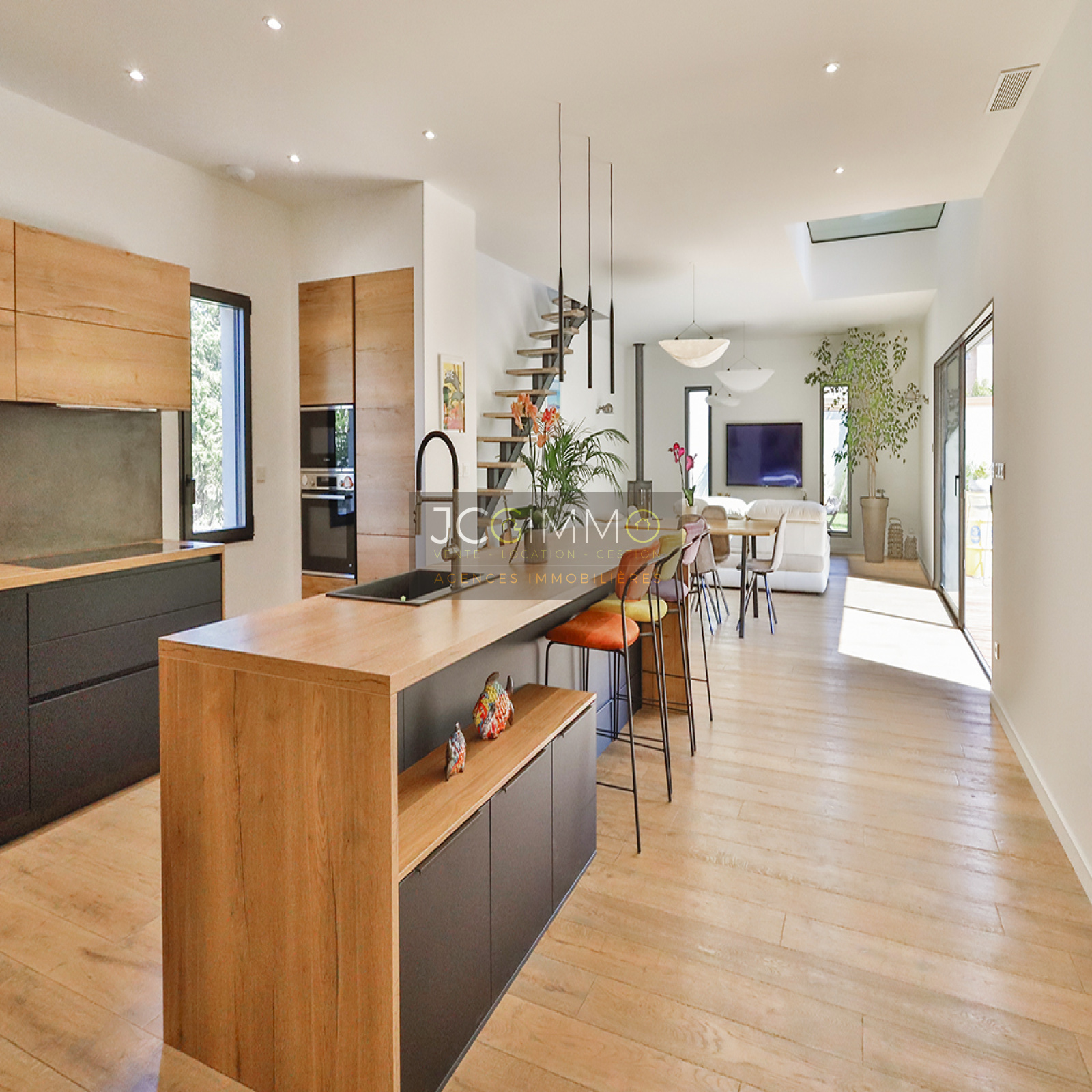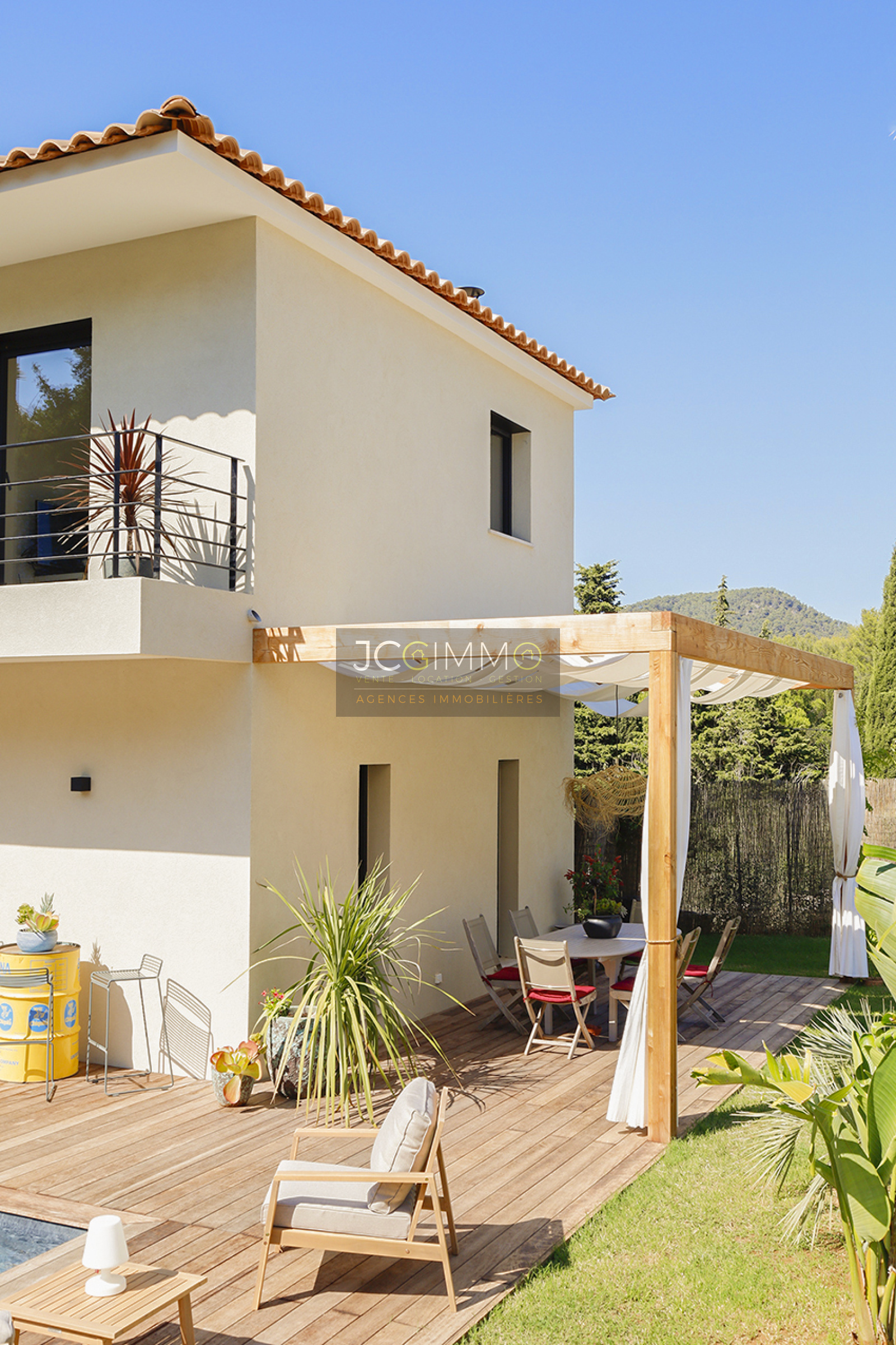 Achevée en 2023 avec des matériaux et des prestations Haut de Gamme, la villa se situe au calme, sur un terrain paysagé et ensoleillé de 655 m², clos.