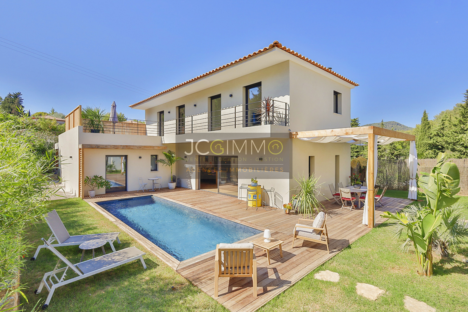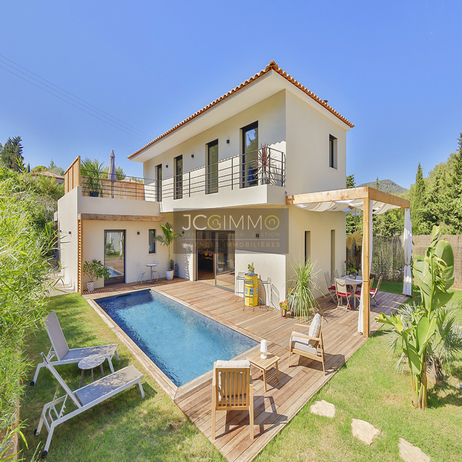 CARQUEIRANNE: L'agence JCG IMMO est très fière de pouvoir vous proposer cette superbe villa T6 Haut de gamme de 190 m2 habitables (dont 18 m2 de garage), parfaitement aménagée avec piscine, garage, cuisine d'été…