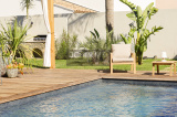 • Au premier étage, accessible par un escalier suspendu, la villa propose un second séjour, une suite avec salle d'eau privative, deux chambres, une salle de bains et des WC. Chaque pièce de l’étage donne l’accès a une magnifique terrasse sur toit, en bois exotique.