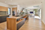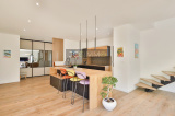 • Au RDC : un immense espace de vie comprenant un salon / salle à manger, une cuisine ouverte, aménagée, et agrémentée d’un bel îlot central.