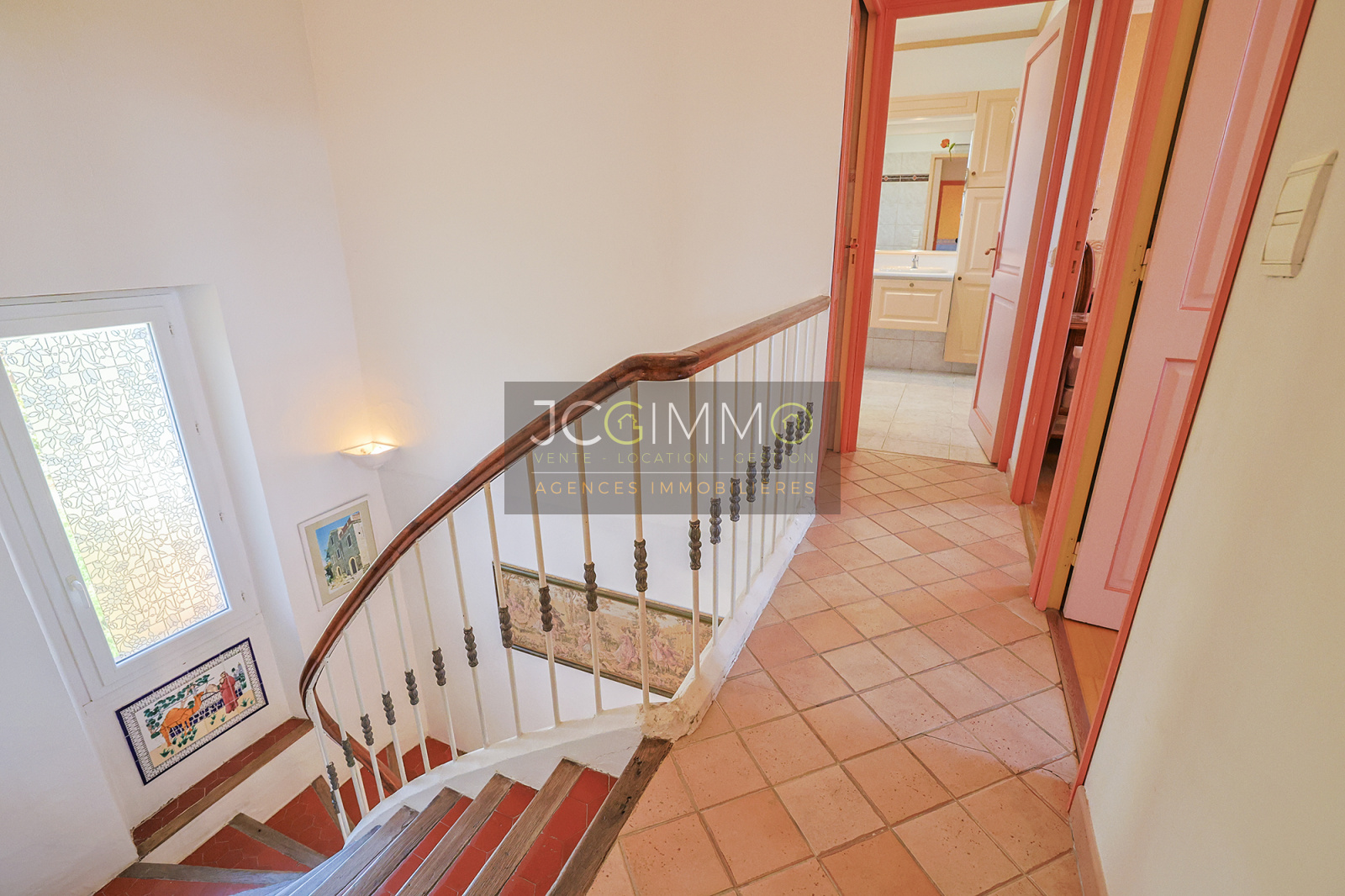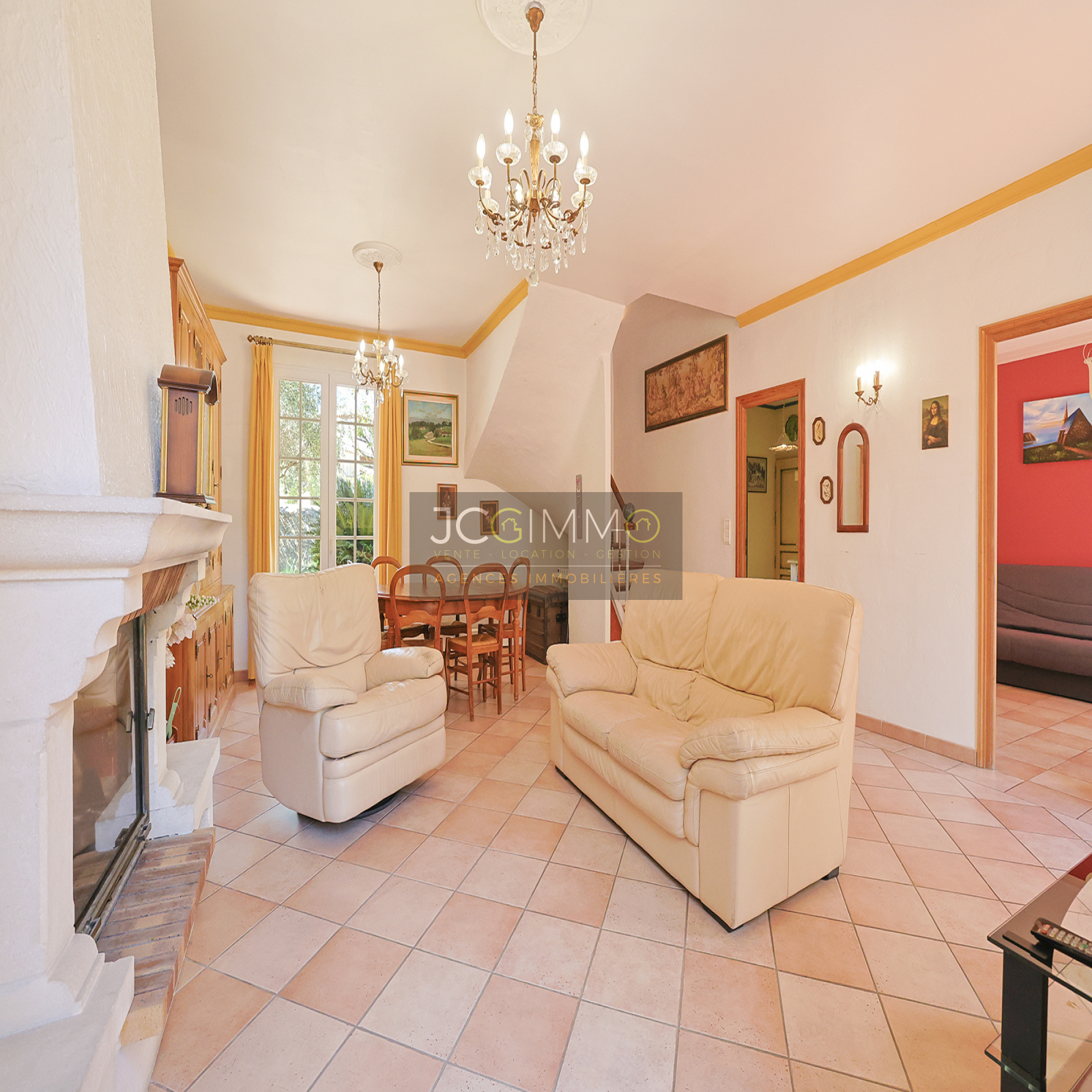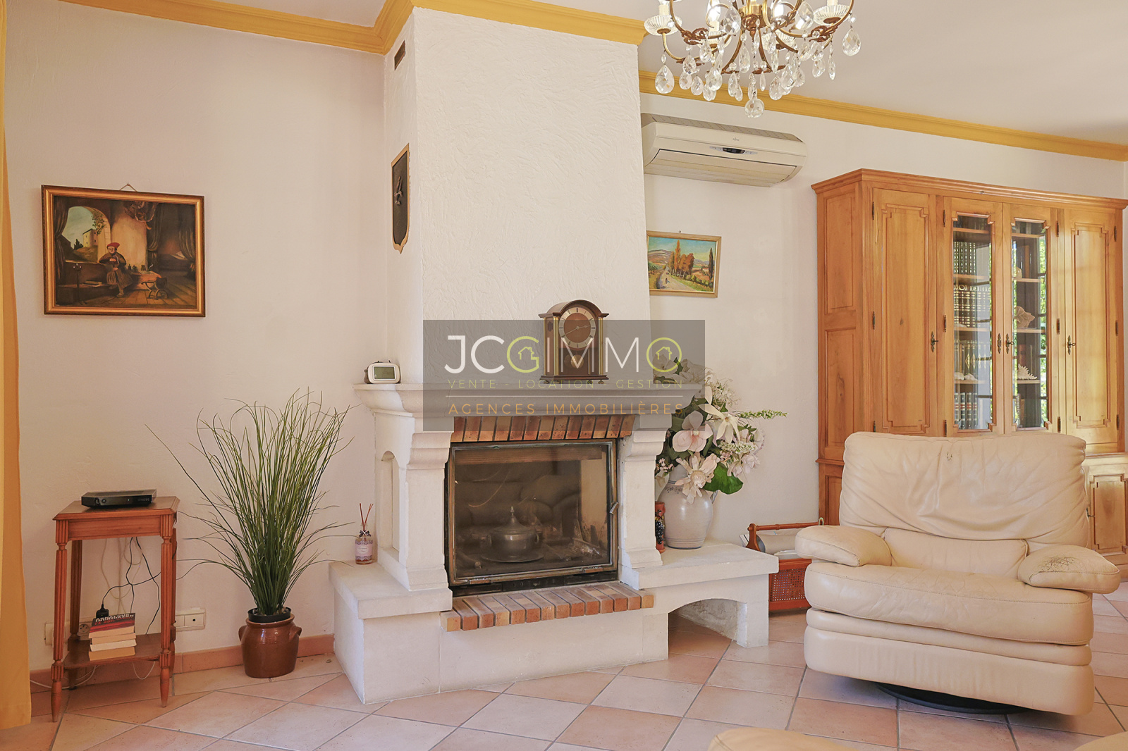 Une belle luminosité grâce aux ouvertures traversantes pour le salon-salle à manger avec cheminée et climatisation, une chambre parentale (chambre de 11 m², salle d’eau et wc), une cuisine indépendante de style provençale, une arrière cuisine, une petite cave. Accès au garage.