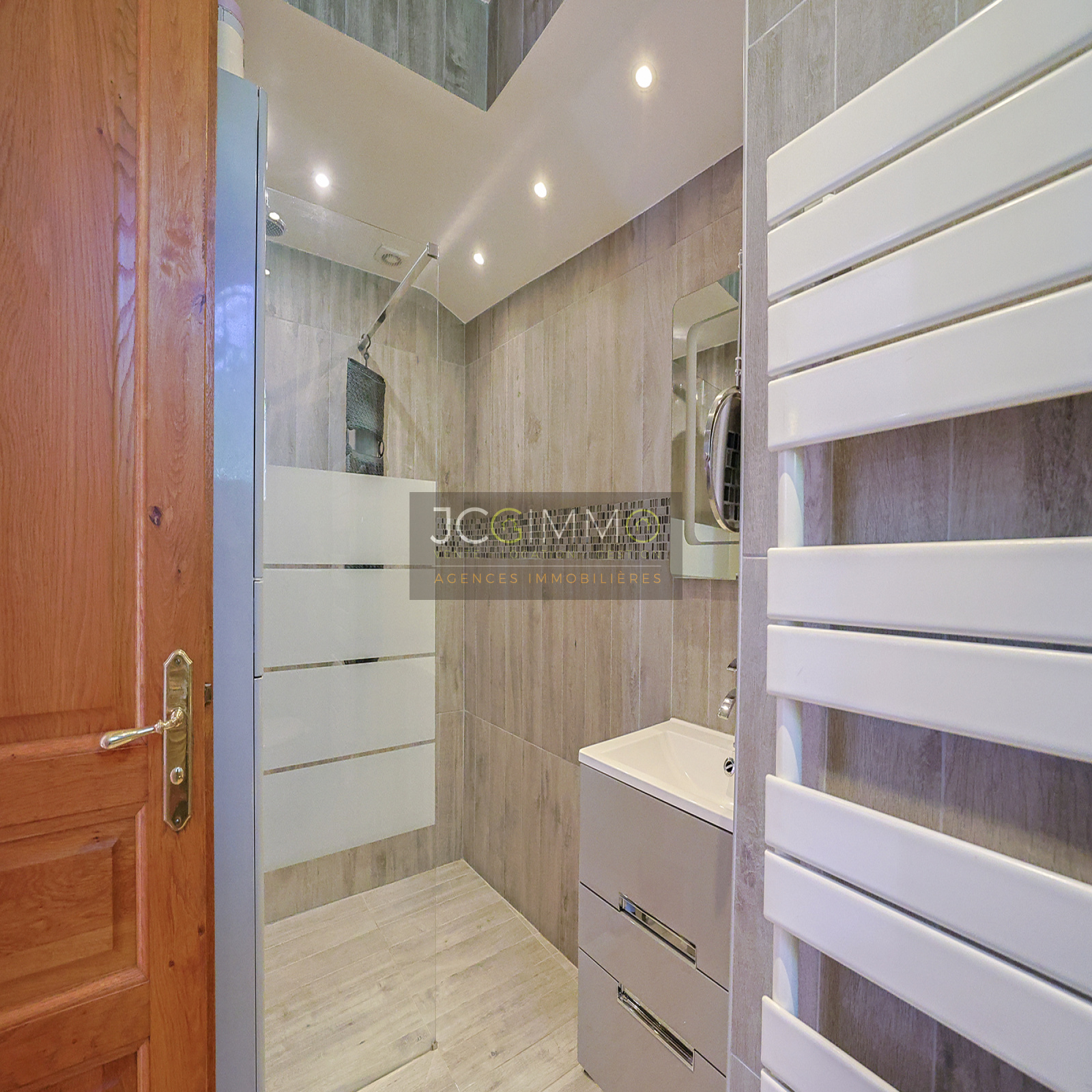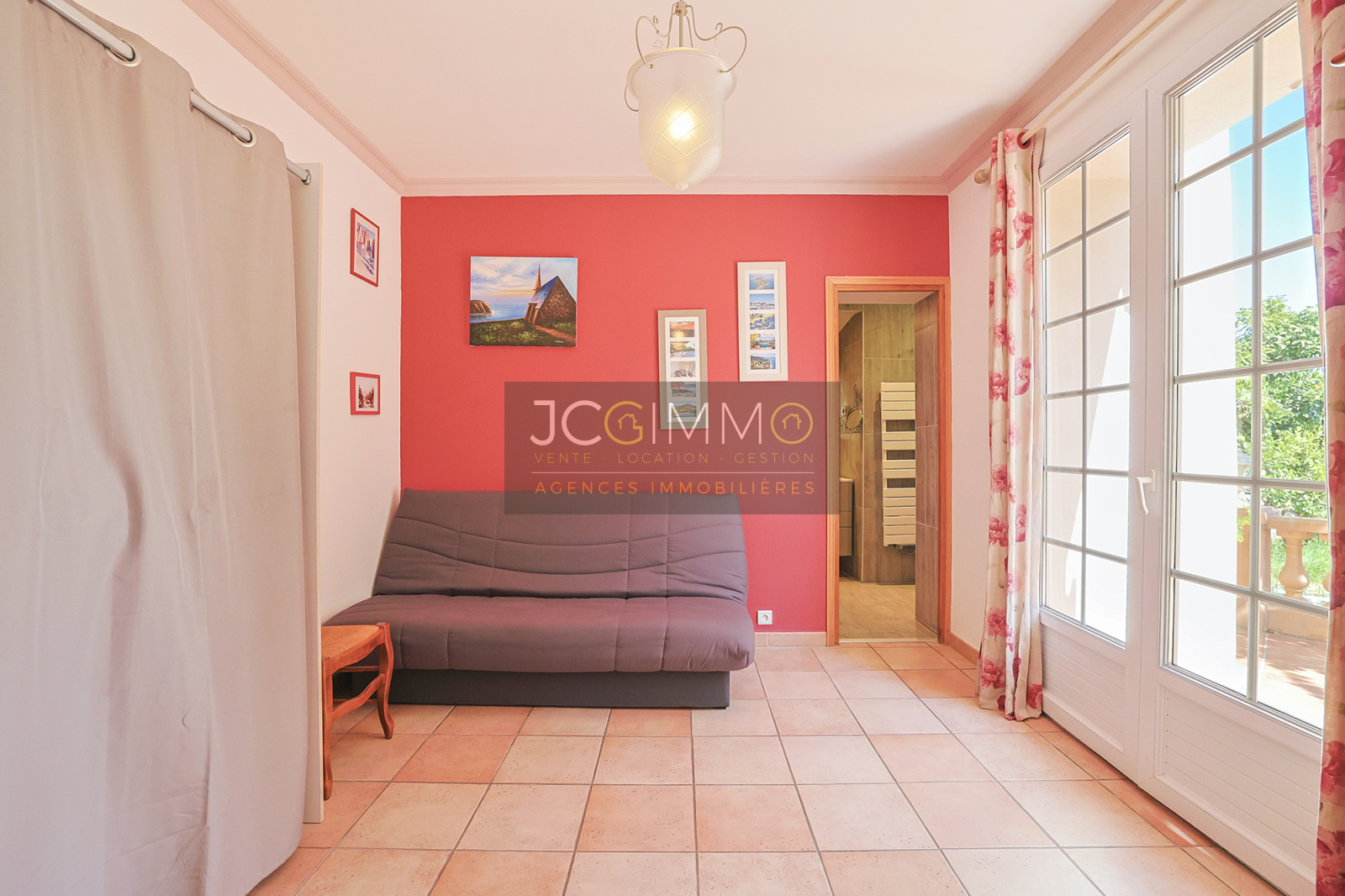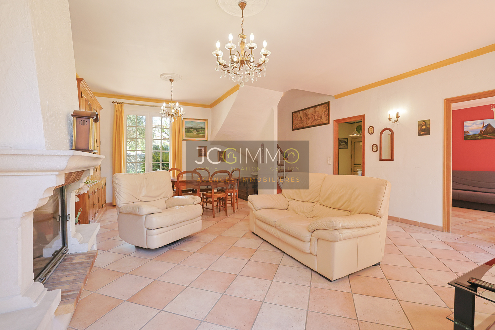 Une belle luminosité grâce aux ouvertures traversantes pour le salon-salle à manger avec cheminée et climatisation, une chambre parentale (chambre de 11 m², salle d’eau et wc), une cuisine indépendante de style provençale, une arrière cuisine, une petite cave. Accès au garage.