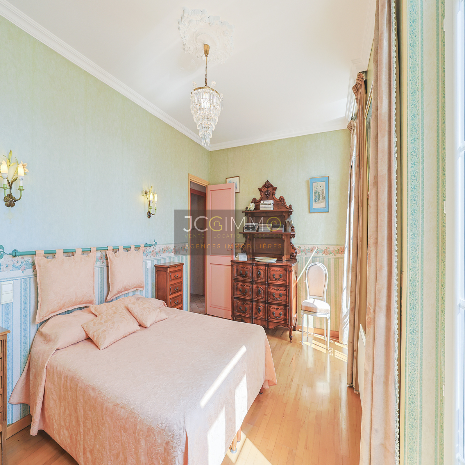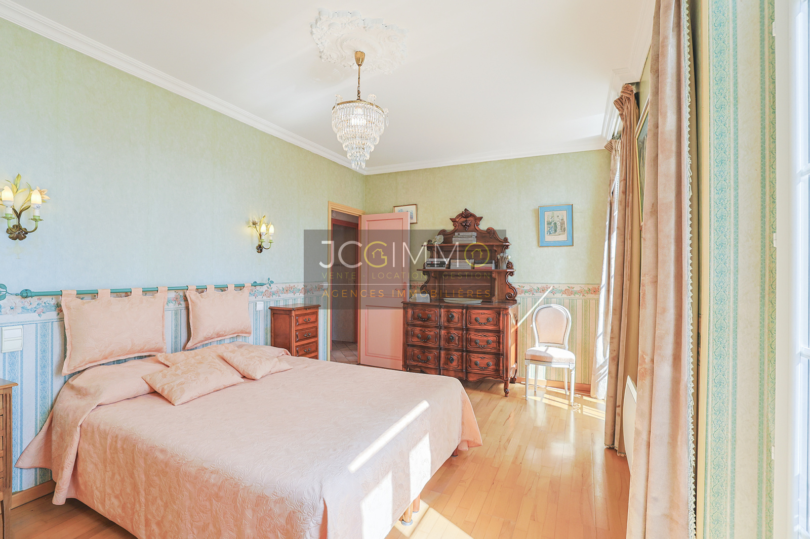 Vous bénéficiez d'un bel aperçu mer. 3 chambres (12, 16, 10 m²) dont 2 avec arrière-chambres (dressing de 3,30m² chacun) ; une salle de bains (douche et baignoire balnéo). WC indépendant.