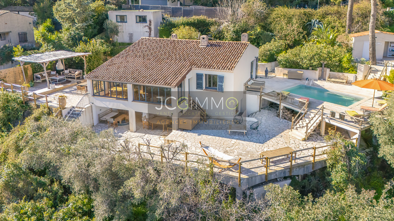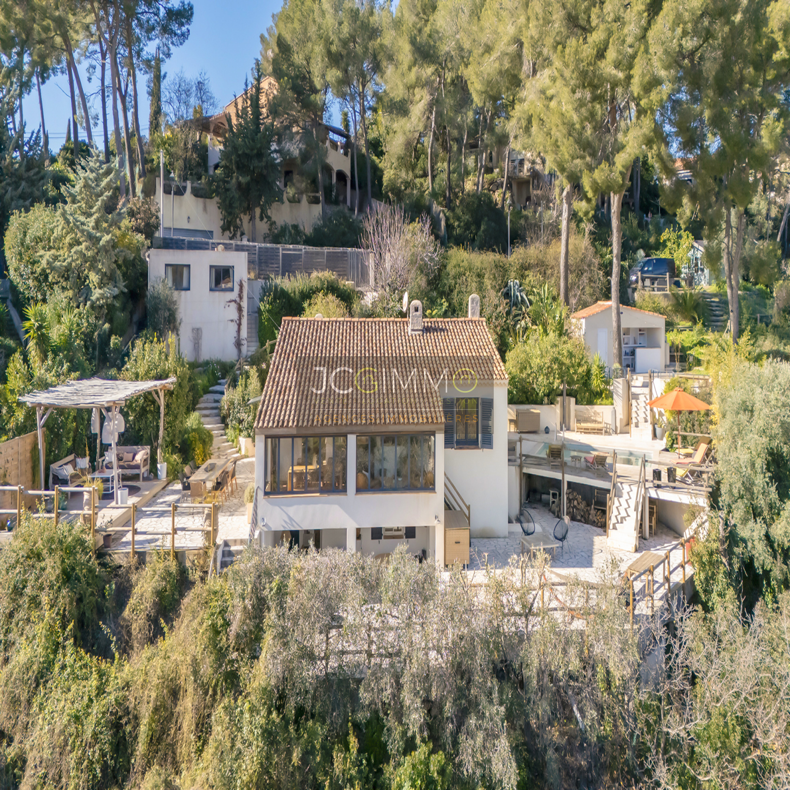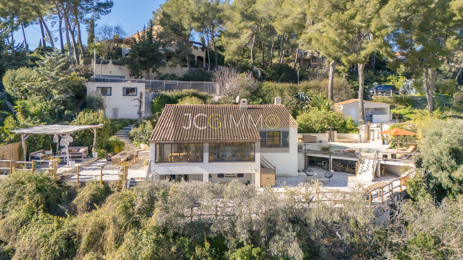 JCG IMMO est fier de vous présenter en EXCLUSIVITE et NULLE PART AILLEURS cette BELLE VILLA INDIVIDUELLE T6 avec vue MER DOMINANTE et PANORAMIQUE, entièrement redécorée et réaménagée en 2025, d’une surface habitable de 182,55 m², dont un espace aménagé (2 chambres + salle d’eau/WC) en rez de jardin avec sa terrasse couverte et ses 2 accès individuels + un véritable studio indépendant, en complément de plusieurs terrasses, d’une piscine 4x6 et de nombreuses autres prestations justifiant son caractère ATYPIQUE et UNIQUE sur un terrain totalement clos de 1 476 m² bénéficiant d'une orientation SUD/SUD-EST.