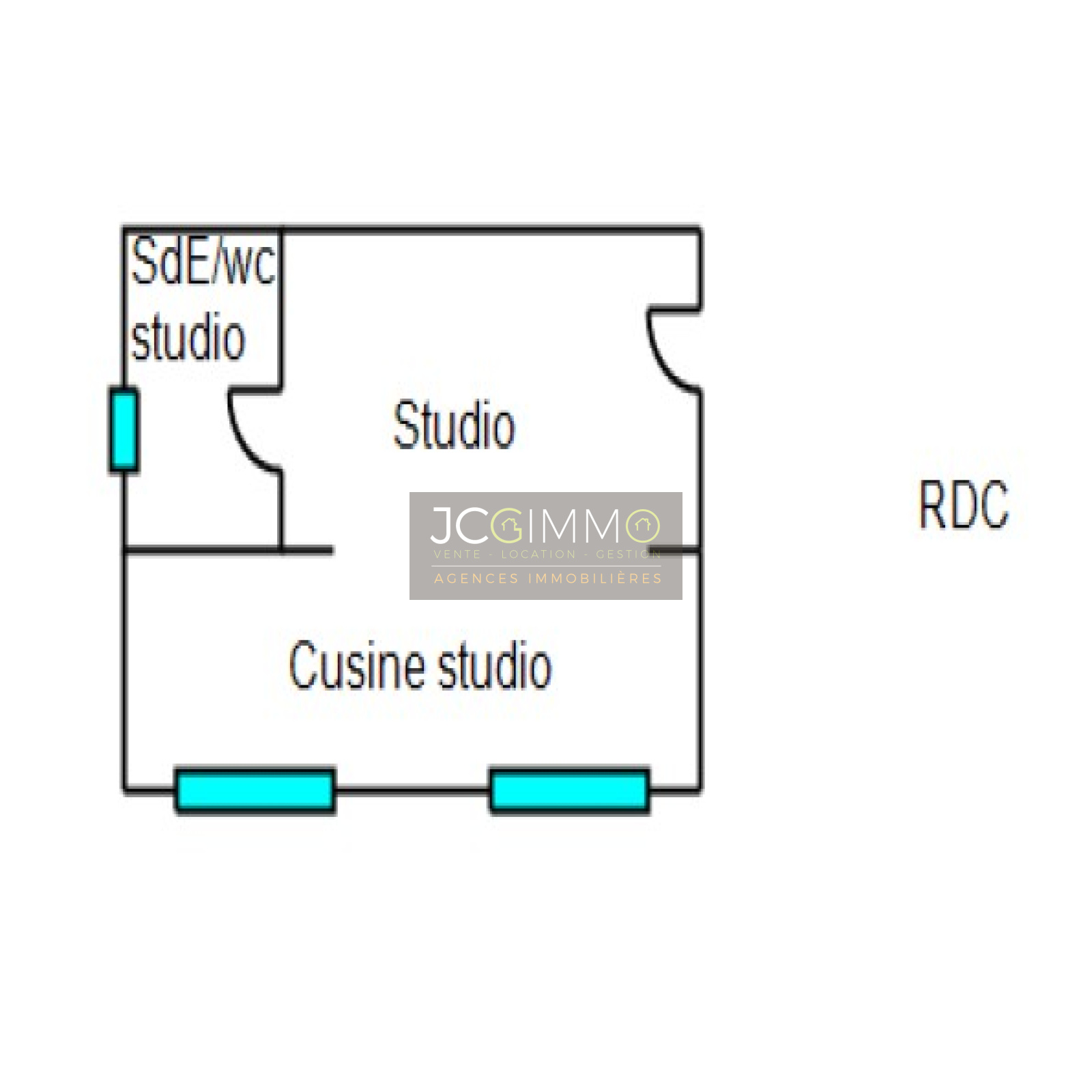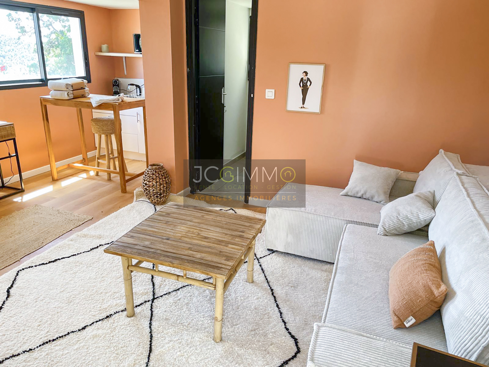 CÔTE STUDIO INDEPENDANT (26,64 m²) : Une pièce de vie avec un espace salon/chambre et un coin cuisine de 21,62 m² en complément d’une salle d’eau avec WC de 5,02 m².