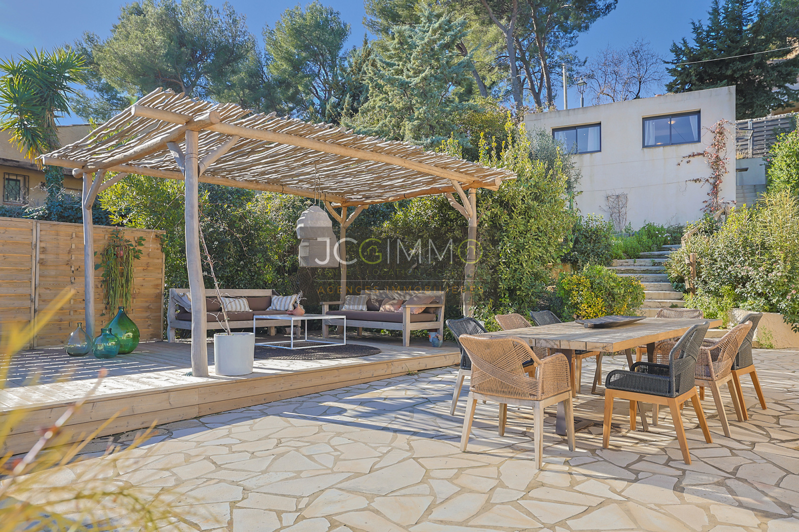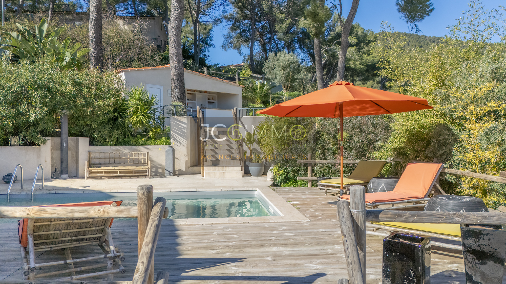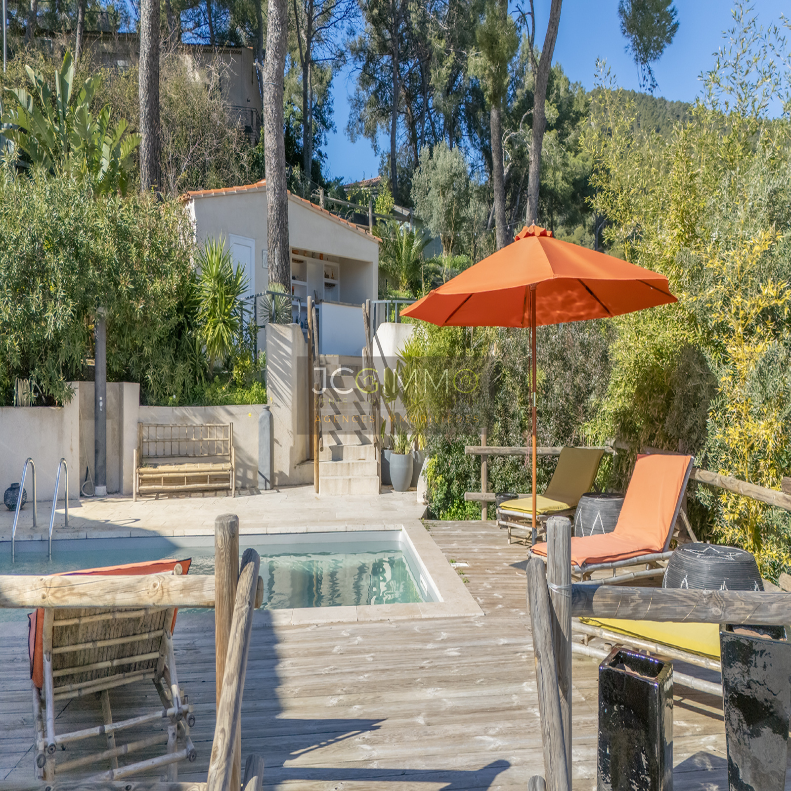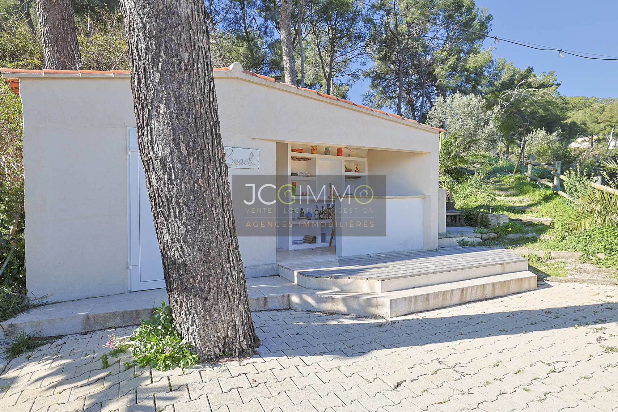 At the end of a cul-de-sac, away from prying eyes, come and discover an ATYPICAL and CHARMING place nestled on the heights of CARQUEIRANNE between LAND and SEA in a sought-after residential area, in a quiet location, 10 minutes walk from the village centre, schools, transport and other amenities.