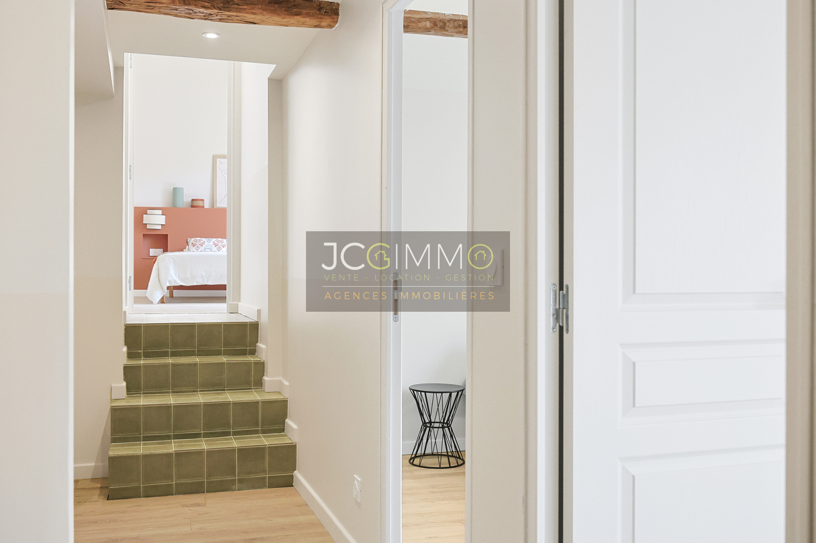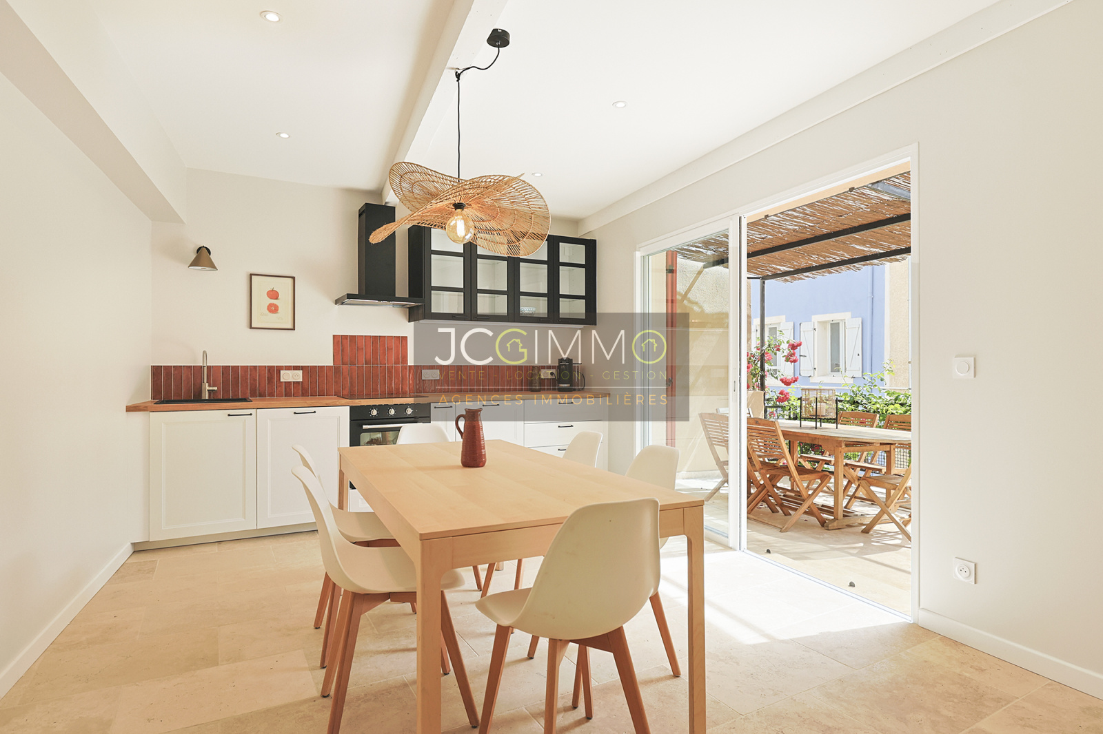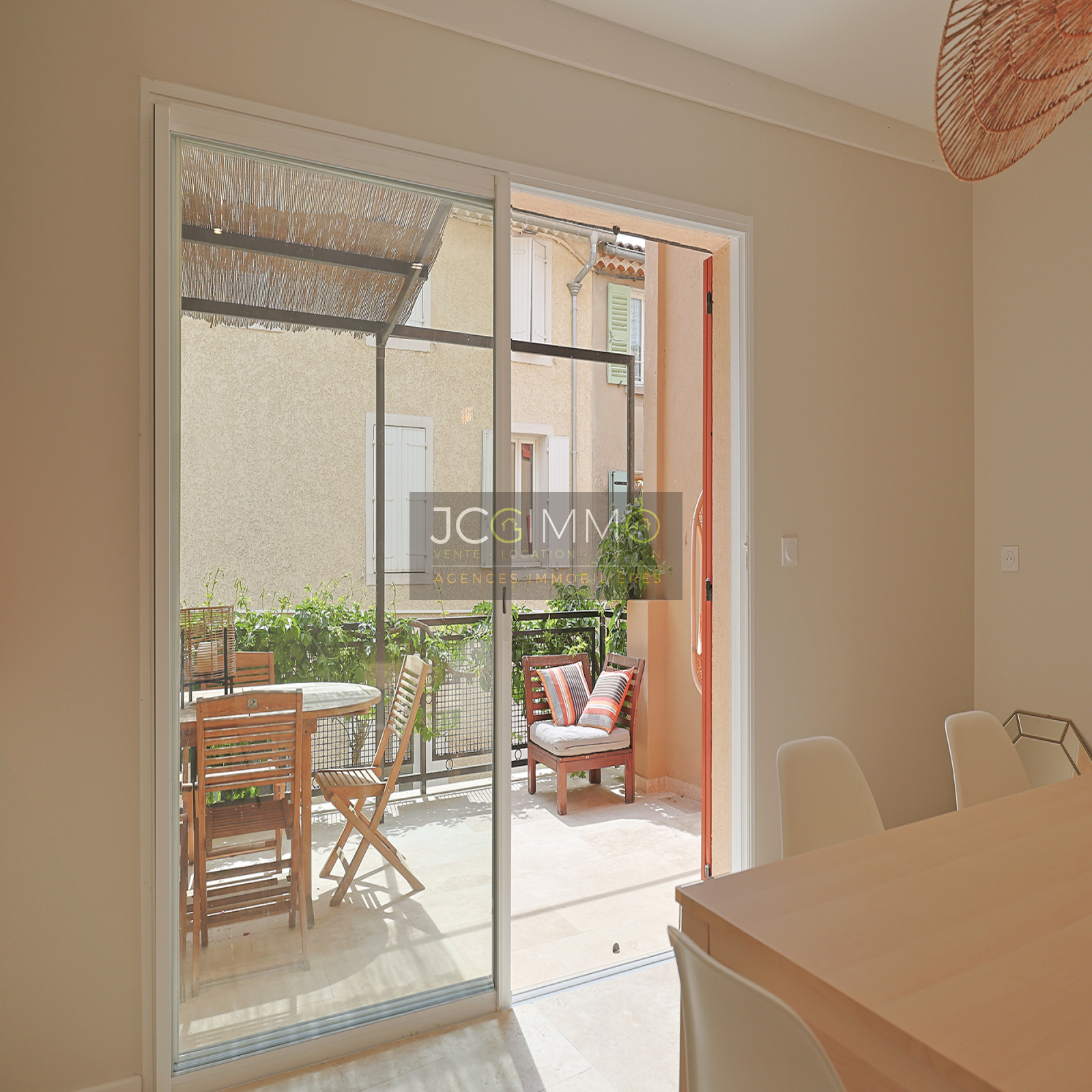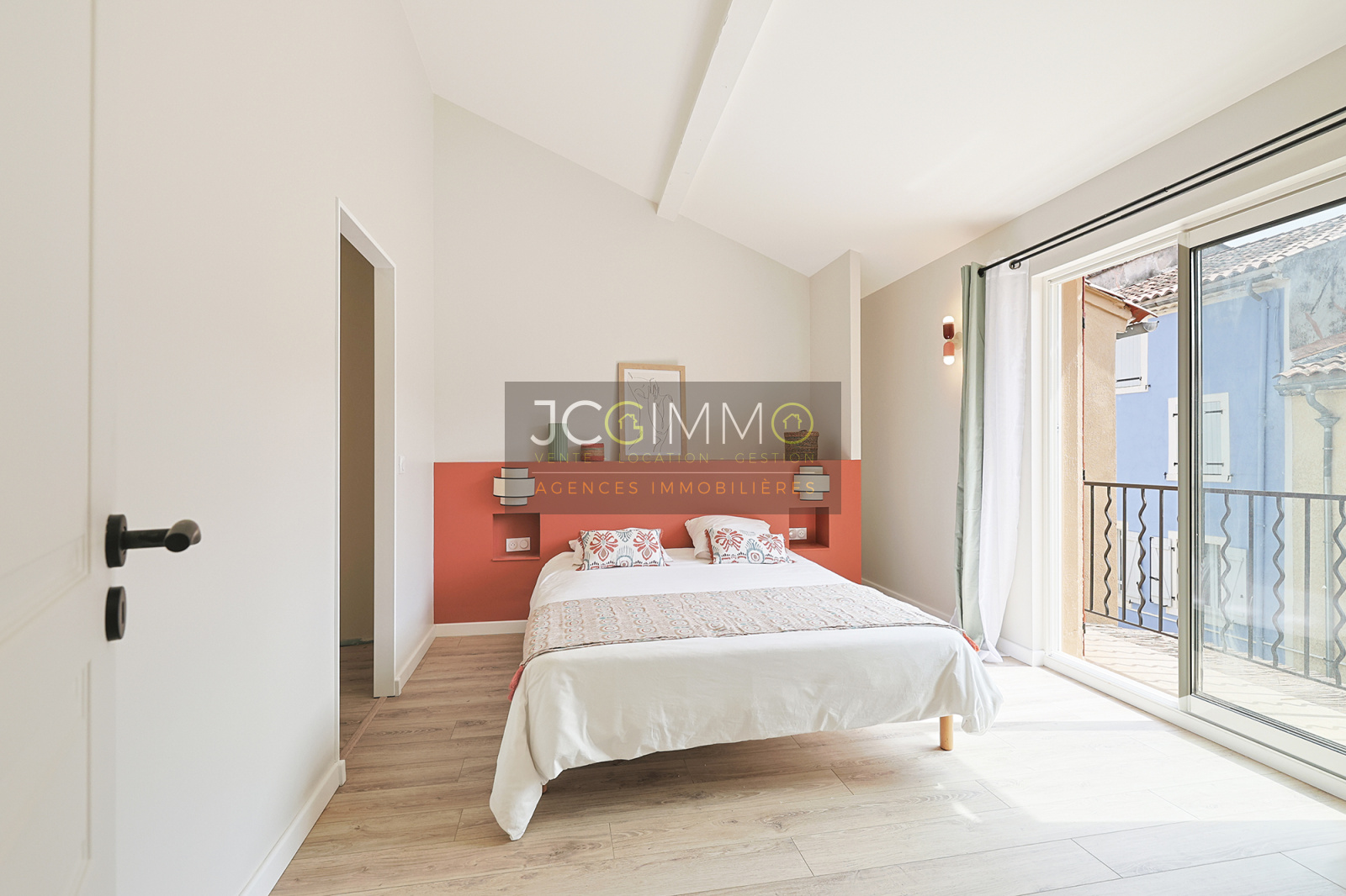 COLLOBRIÈRES : nous sommes fiers de vous présenter cette maison de ville d'architecte TOTALEMENT RENOVÉE d'environ 160m² en R+3 avec double garage et terrasse. Elle est située au cœur du village, proche de toutes les commodités et parkings communaux. Elle se compose :
