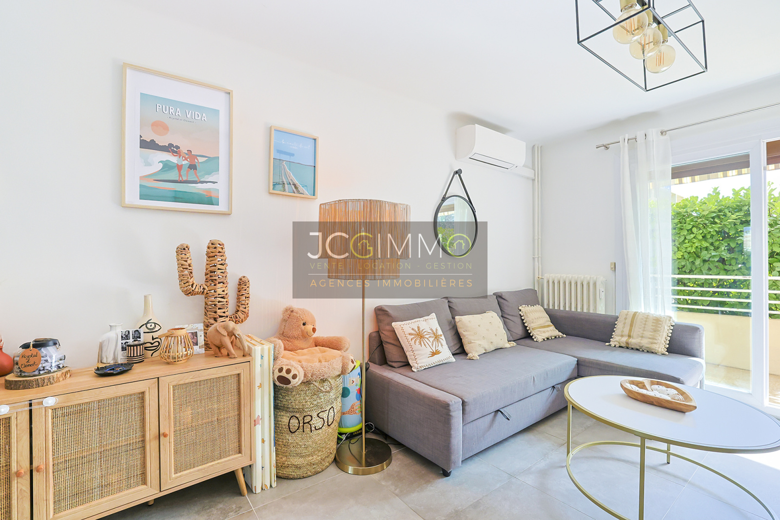 JCG IMMO est fier de vous présenter cet appartement T3 bis de 56,3m² loi carrez avec terrasse et cave situé dans une résidence entretenue, calme, sécurisée et proche des commodités. Il est situé au rez-de-chaussée d'un immeuble de deux étages composé de 6 appartements seulement (2 appartements par niveau). Il se compose d'un séjour/cuisine US équipée donnant au SUD sur une terrasse de 9m² et au NORD sur une loggia aménagée en arrière-cuisine/buanderie, de deux chambres dont une donnant sur la terrasse, d'un dressing avec fenêtre, d'une salle d'eau et d'un WC indépendant. L'appartement a été rénové récemment. Il est équipé de belles prestations : double vitrage, volets roulants électriques, climatisation réversible, fibre, stores bannes motorisés… Au sous-sol, une cave privative augmentant la capacité de stockage de l'appartement. Le PLUS : le ravalement de façade a été payé en totalité par les copropriétaires. Lots de copropriété numéro 137 (cave) et 143 (appartement) avec un total de 160/10 000èmes des parties communes générales. Appel de fonds trimestriel de 380€.
