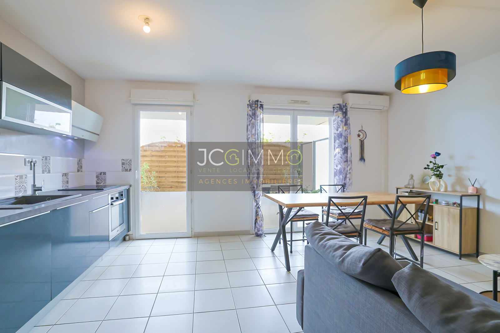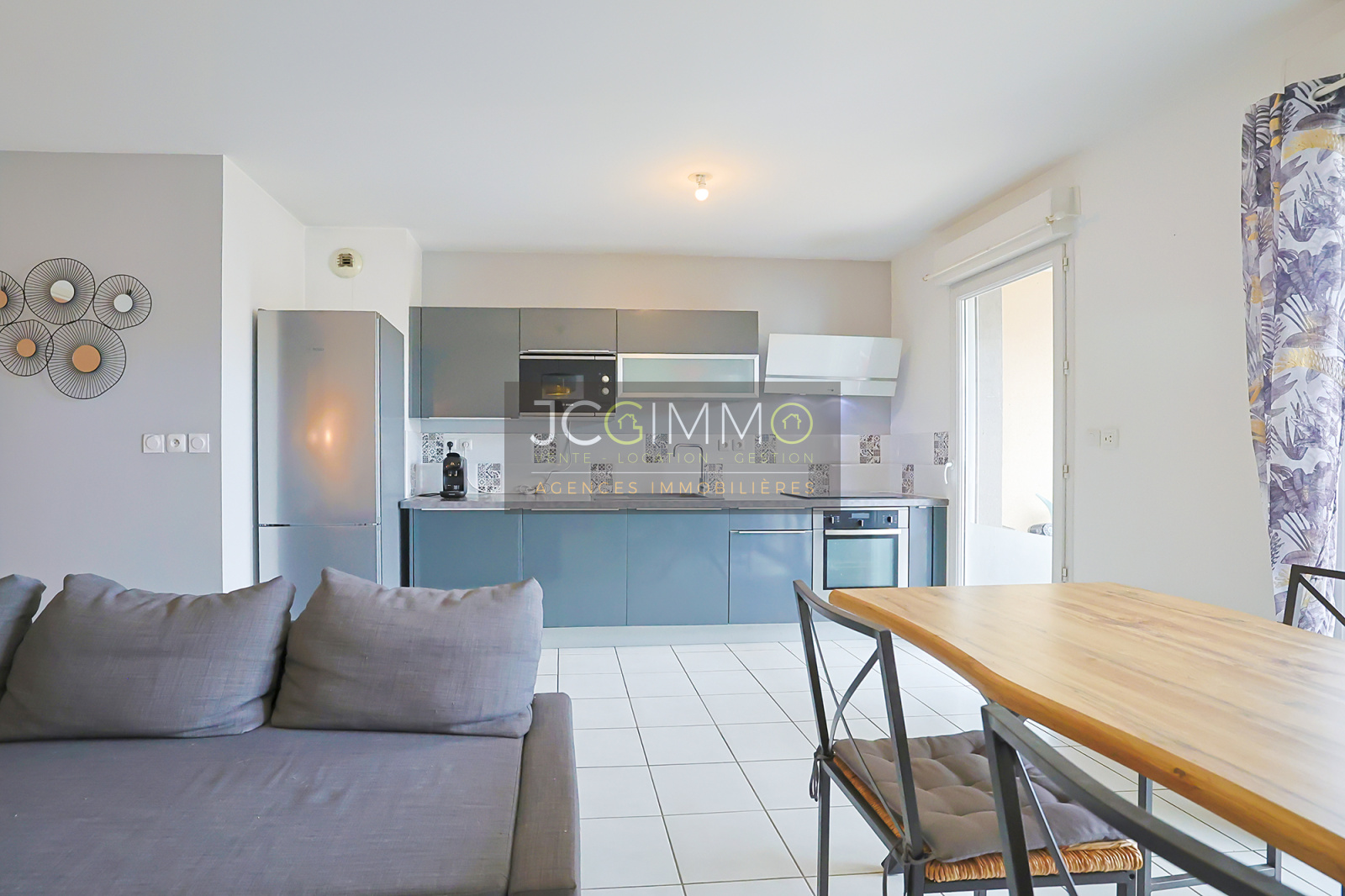 PRESTATIONS : Cuisine aménagée et équipée (plaque induction, hotte, four encastré, micro-ondes), salle de bains aménagée et équipée (vasque, sèche serviette, VMC), huisseries PVC avec double vitrage, stores roulants électriques, climatisation réversible (espace de vie cuisine/salle à manger), radiateurs à inertie pour les 2 chambres, accès PMR, visiophone, fibre internet, eau de ville, tout à l’égout.