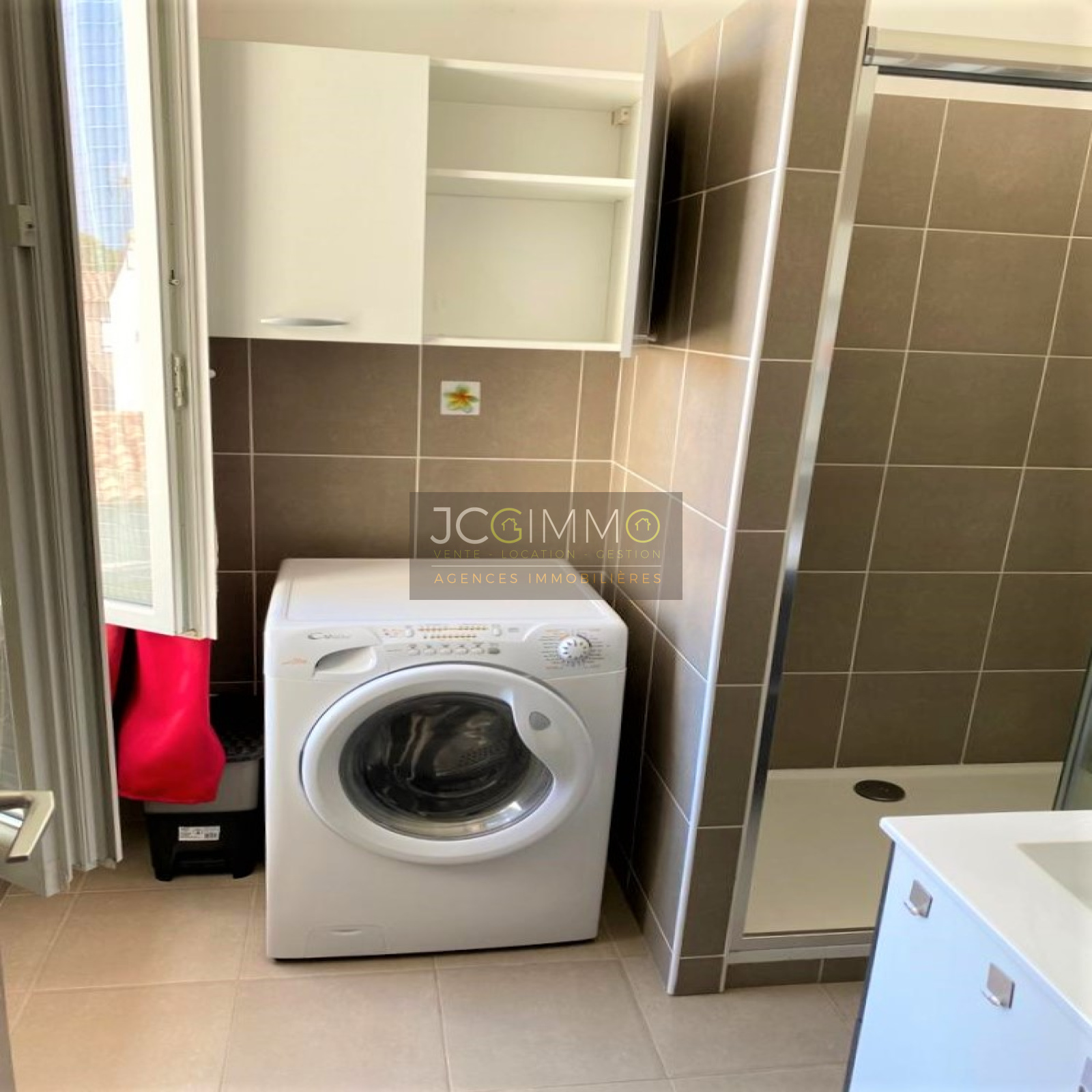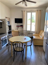 L'appartement se compose d'une belle pièce de vie baignée de lumière avec une cuisine ouverte et un coin salon, 1 chambre et une salle d'eau + WC avec un coin buanderie.