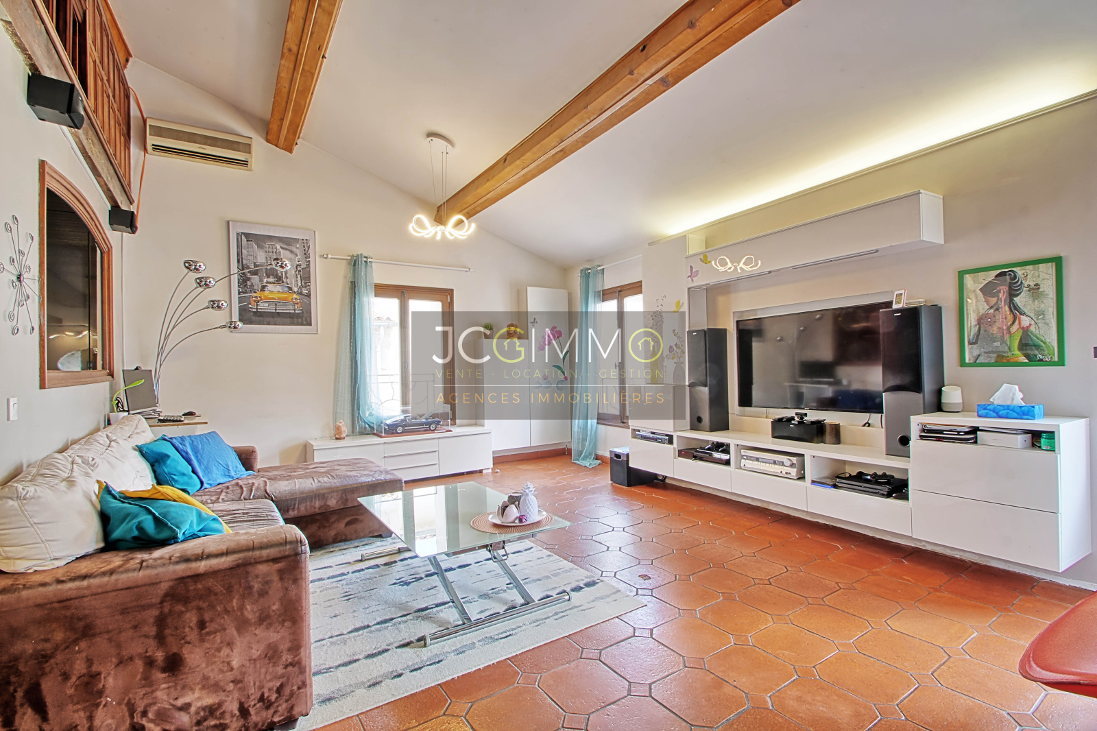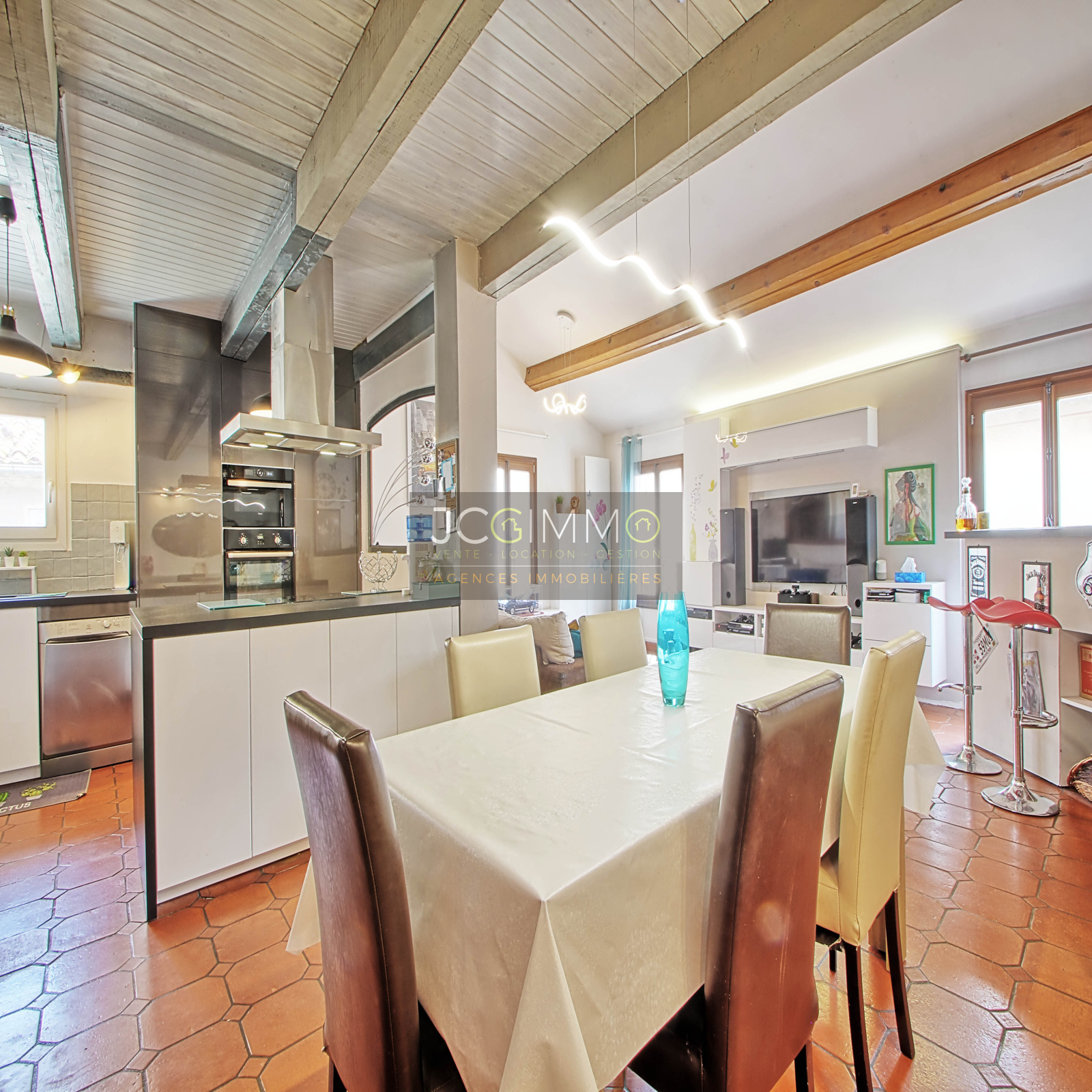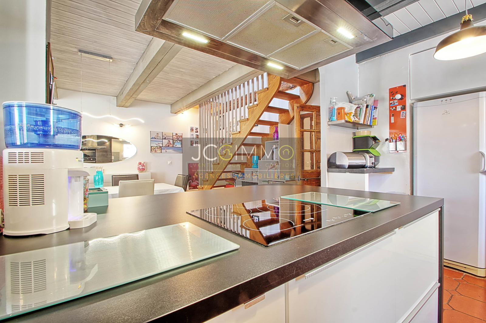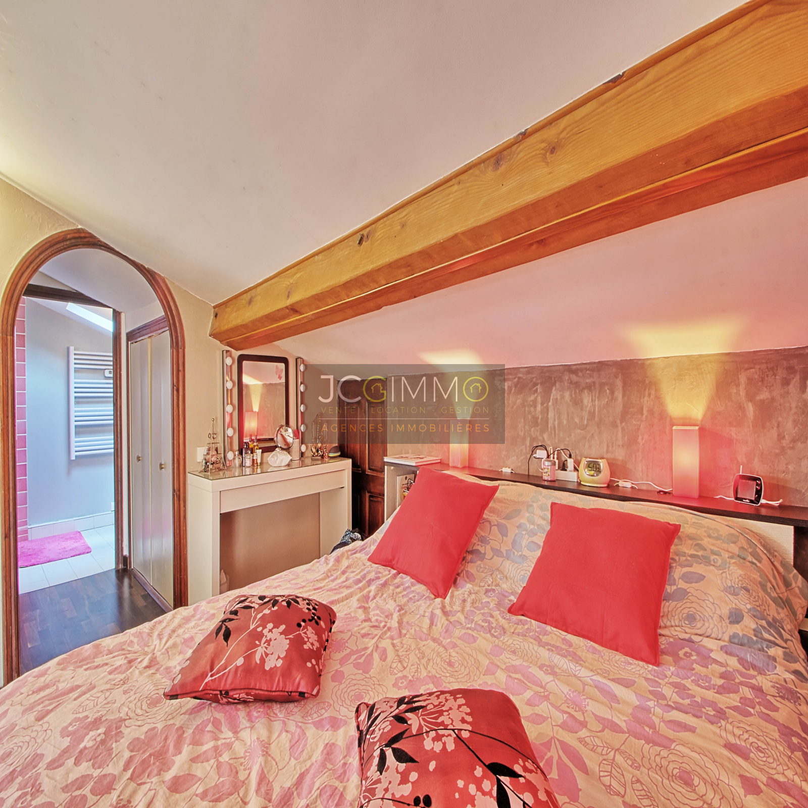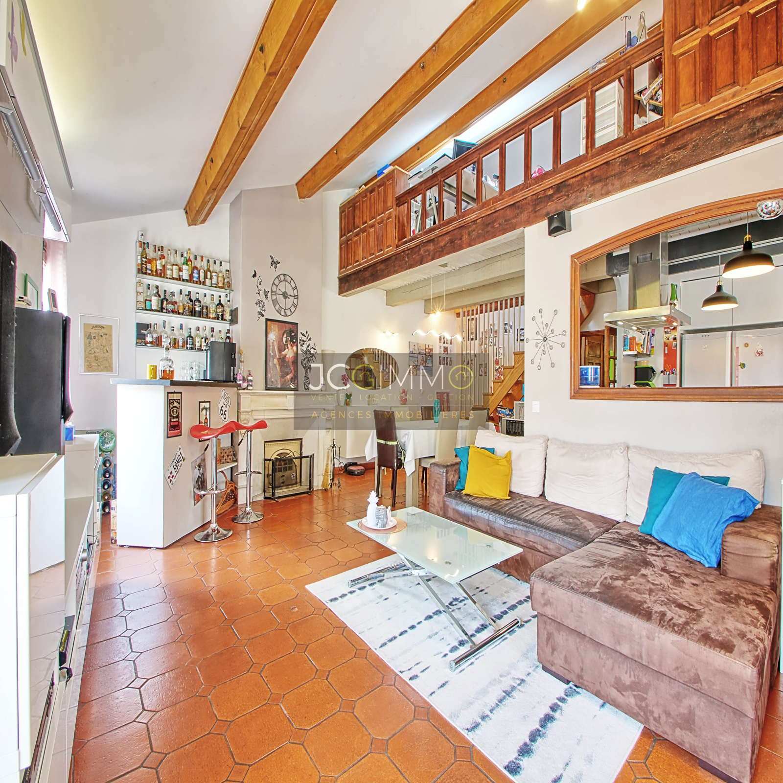 - VENDU - CUERS (centre ville). JCG IMMOBILIER vous propose en EXCLUSIVITE cet appartement DUPLEX traversant de 117m² (Carrez) exposition SUD situé au 2ème et dernier étage d'une petite copropriété de 6 logements gérée par un syndic bénévole (15€/mois). Vous y retrouverez de beaux volumes avec poutres apparentes. Il se compose d'un double séjour/cuisine ouverte équipée de 53m², 2 chambres (16 et 12m²) avec placards intégrés, une salle de bains, wc séparé et un cellier/buanderie. A l'étage, une suite parentale mansardée de 14m² avec coin bureau, dressing, salle d'eau/WC vient compléter ce bien atypique. Possibilité complémentaires de rangement par le grenier. Fenêtres en bois double vitrage, climatisations réversibles salon/séjour + chambres et cheminée. Pas de travaux collectifs à prévoir. Au sous-sol de l'immeuble s'ajoute une belle cave voutée privative de 50m² pour installer un atelier, cave à vins, etc ... Possibilité de location d'un box (20m² environ) en face du logement (90€/mois). Très bon état général (rénovation récente). Proche écoles, commerces et transports. A visiter rapidement ! PHOTOS SUPPLEMENTAIRES & VISITE VIRTUELLE disponibles sur notre site. Le prix affiché inclus les honoraires d'agence. Jacques de Lacretelle Immatriculé au RCS sous le n° 820 251 809 RSAC Toulon N° de police d’assurance Allianz Actif Pro 60 594 675